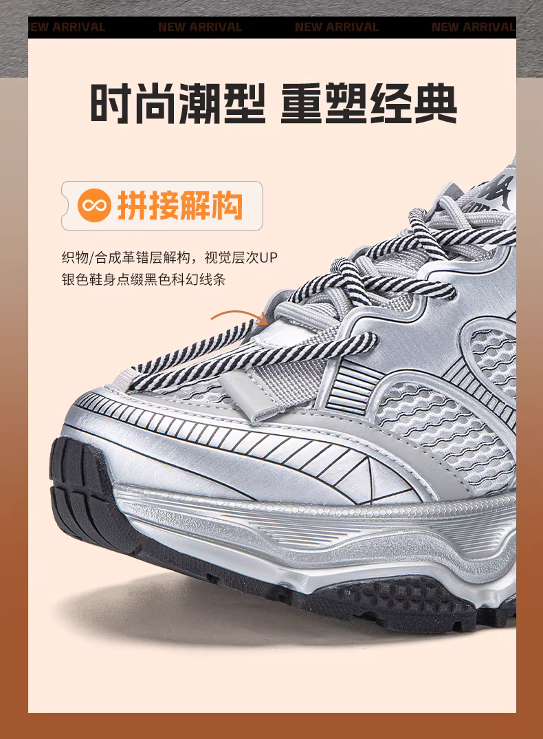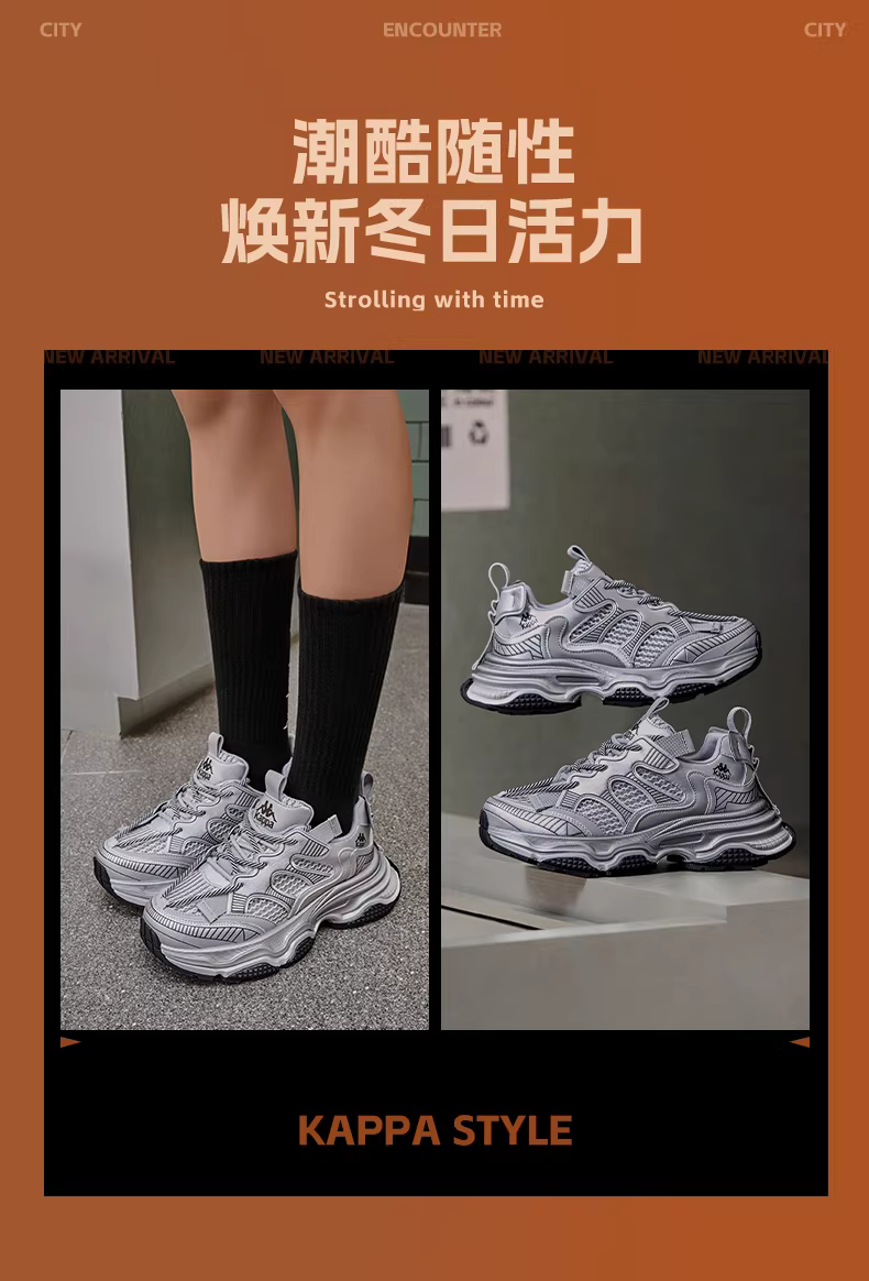 Giày thể thao nữ Kappa bạc kiểu dáng bố mùa đông 2025 mới, đế dày, tăng chiều cao, thời trang, phong cách thường ngày