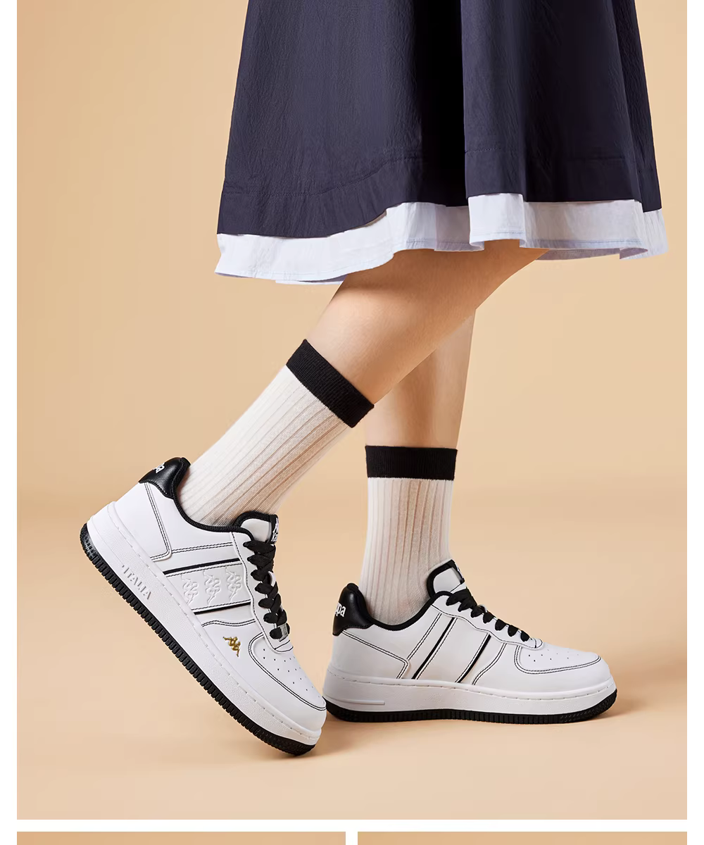 - Giày thể thao nữ Kappa đế dày màu trắng mùa đông 2025 kiểu dáng mới phổ biến, giày thể thao cổ thấp đế mềm phong cách retro