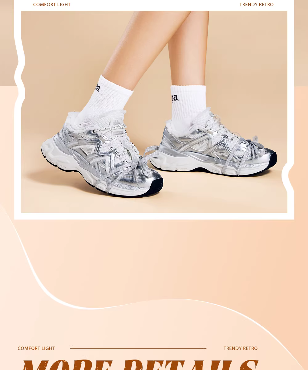 - Giày thể thao nữ Kappa màu bạc kiểu dáng bố mùa đông 2025 mới chất liệu lưới đế dày phong cách retro đa năng giày thường ngày