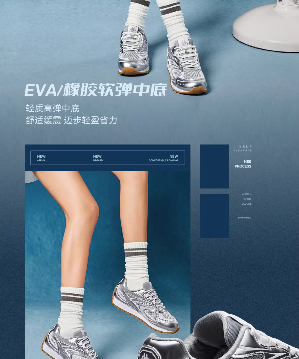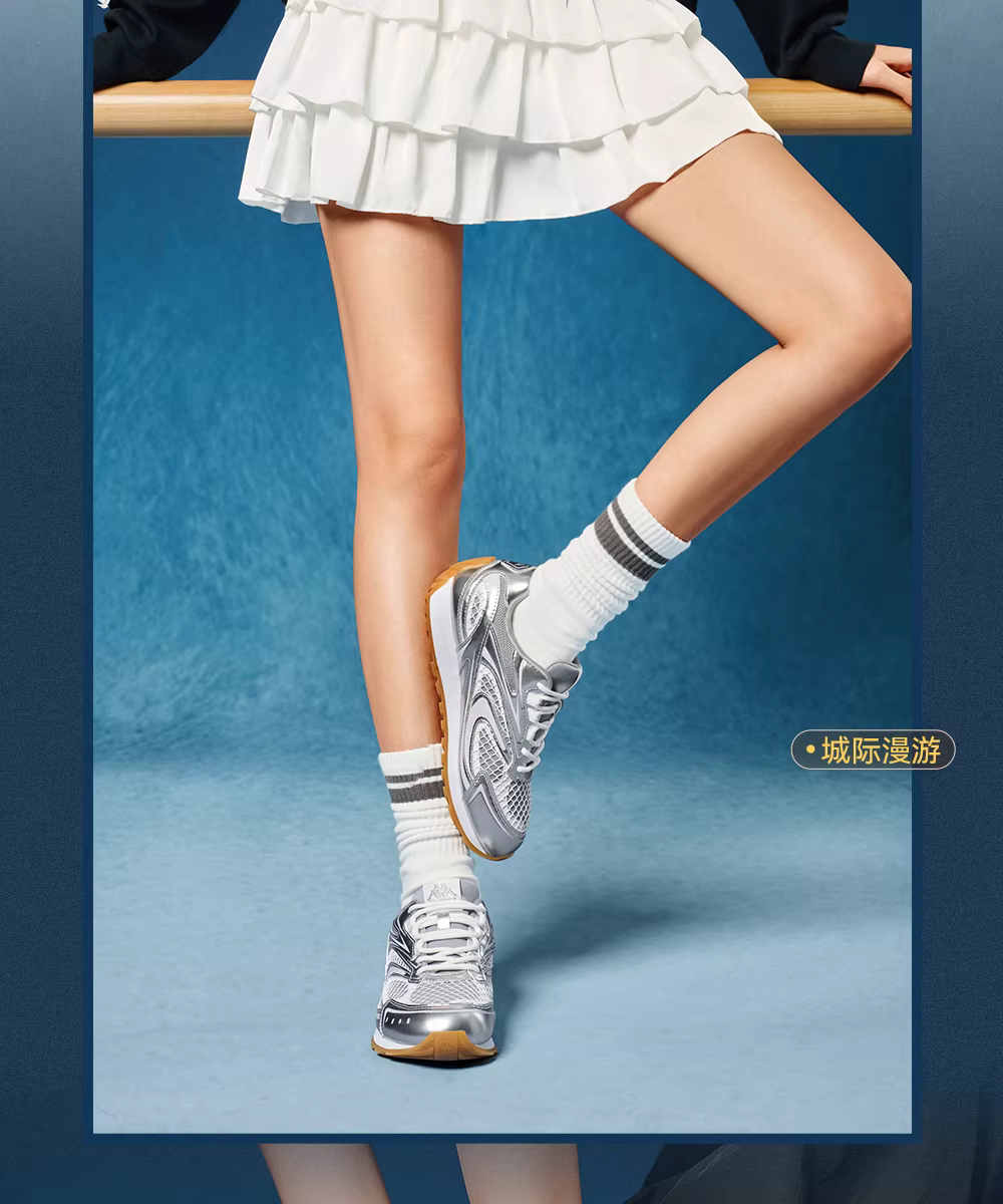 Giày thể thao nữ Kappa màu bạc, mẫu mới 2025, nhẹ, đế mềm, kiểu retro, giày chạy bộ phổ biến, đa năng, giày thường ngày