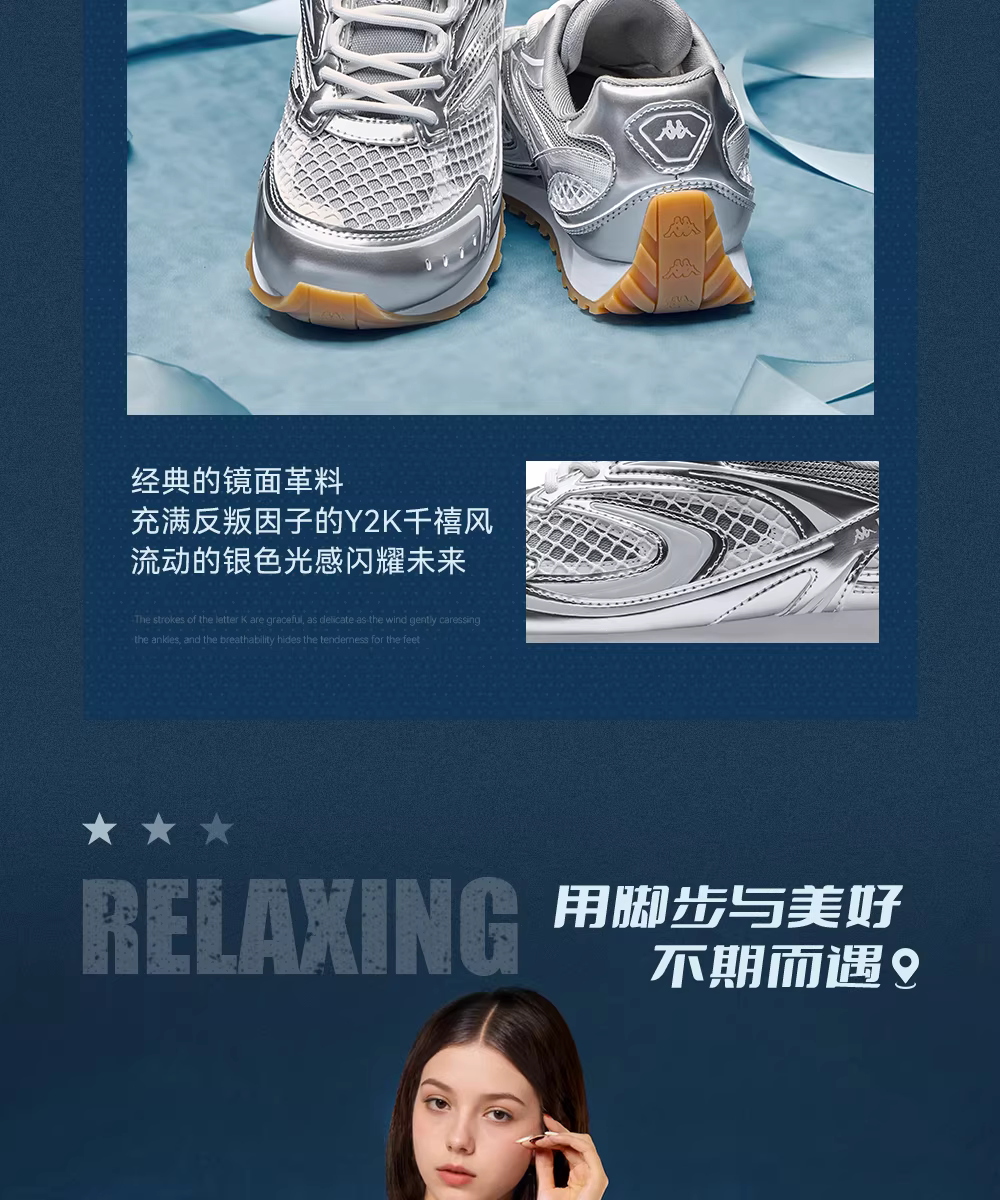 - Giày thể thao nữ Kappa màu bạc, mẫu mới 2025, nhẹ, đế mềm, kiểu retro, giày chạy bộ phổ biến, đa năng, giày thường ngày