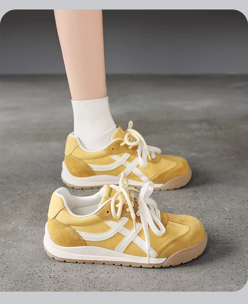 Giày thể thao tăng chiều cao Daphne Anene dành cho nữ 2025, mẫu mới thu đông, lót lông cừu, chất liệu cotton, màu hồng, giày tập luyện thể thao nữ