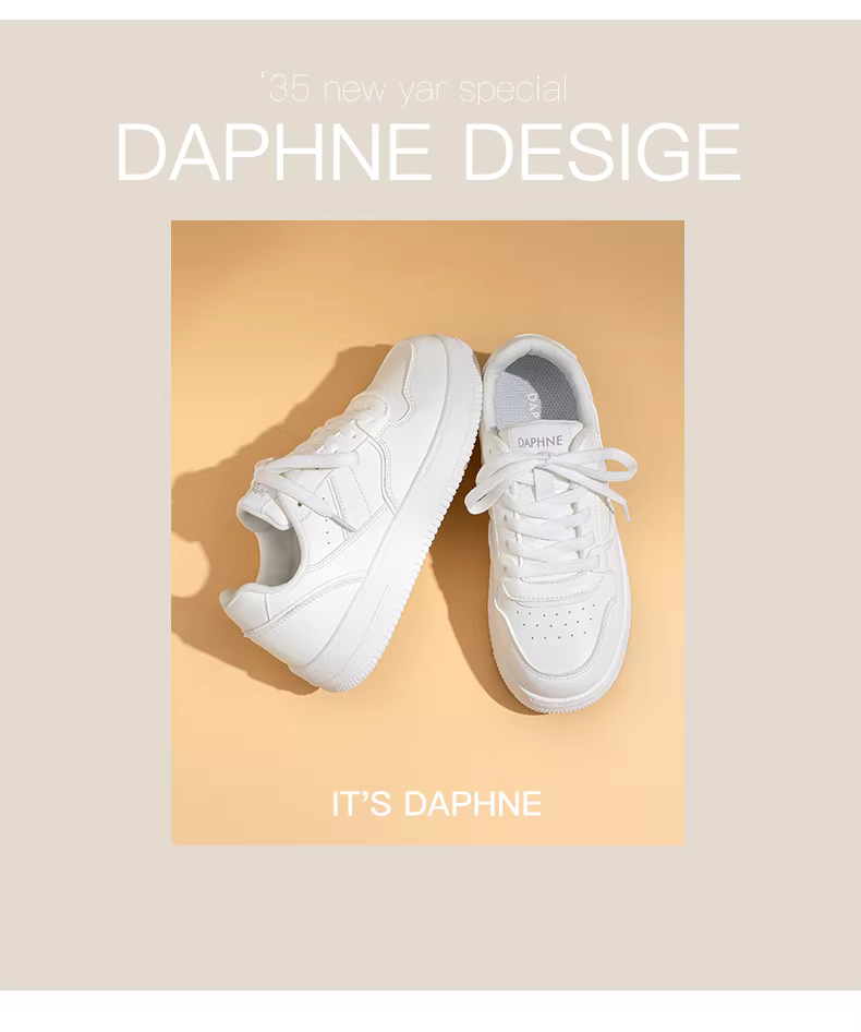 - Giày thể thao trắng cổ điển Daphne dành cho nữ, mẫu mới thu 2025, phong cách học sinh, tăng chiều cao, đa năng, thể thao, năng động.