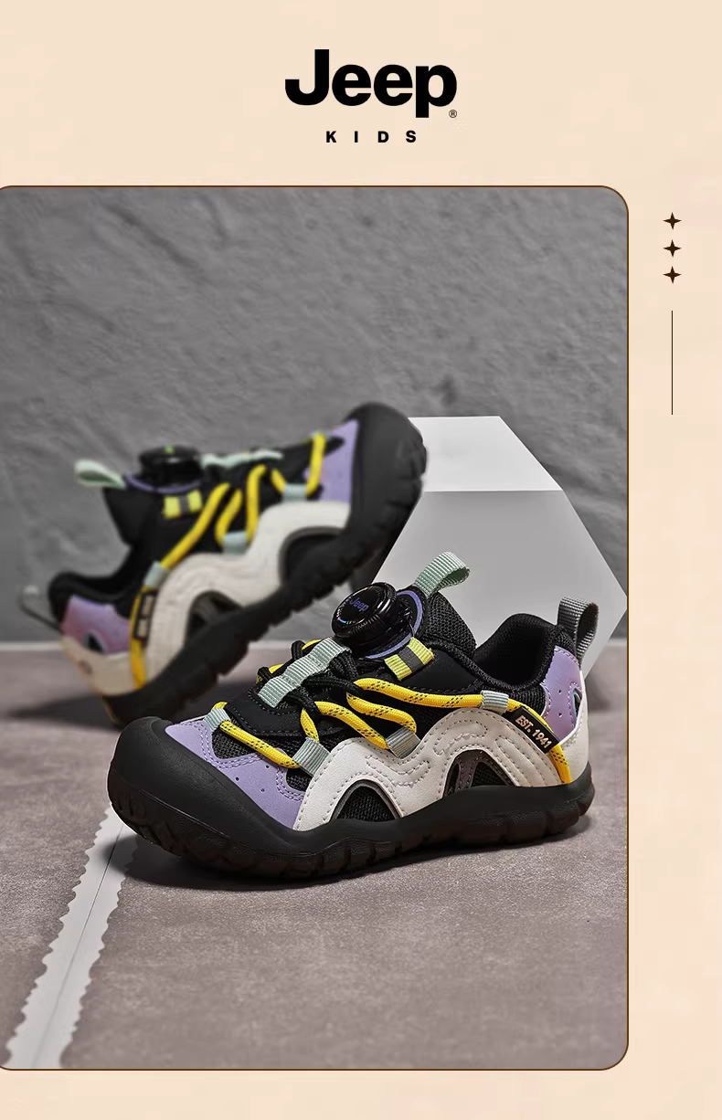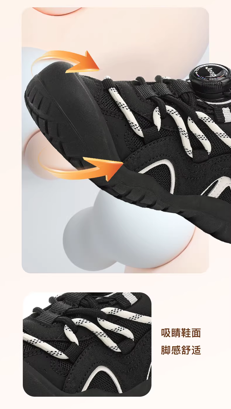 - Giày thể thao trẻ em Jeep đế mềm chống trơn mùa thu 2025 kiểu mới khóa xoay lưới đi bộ ngoài trời dành cho bé trai