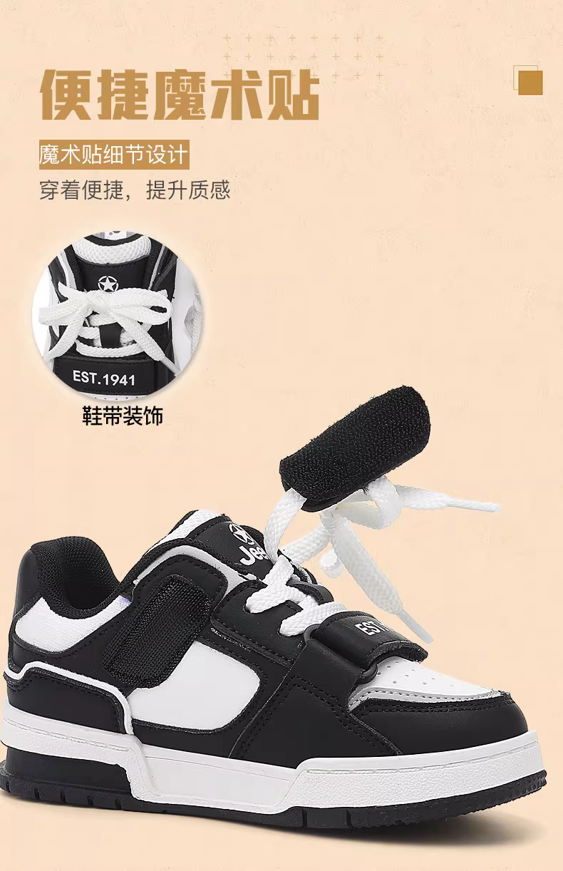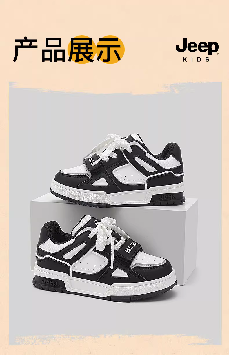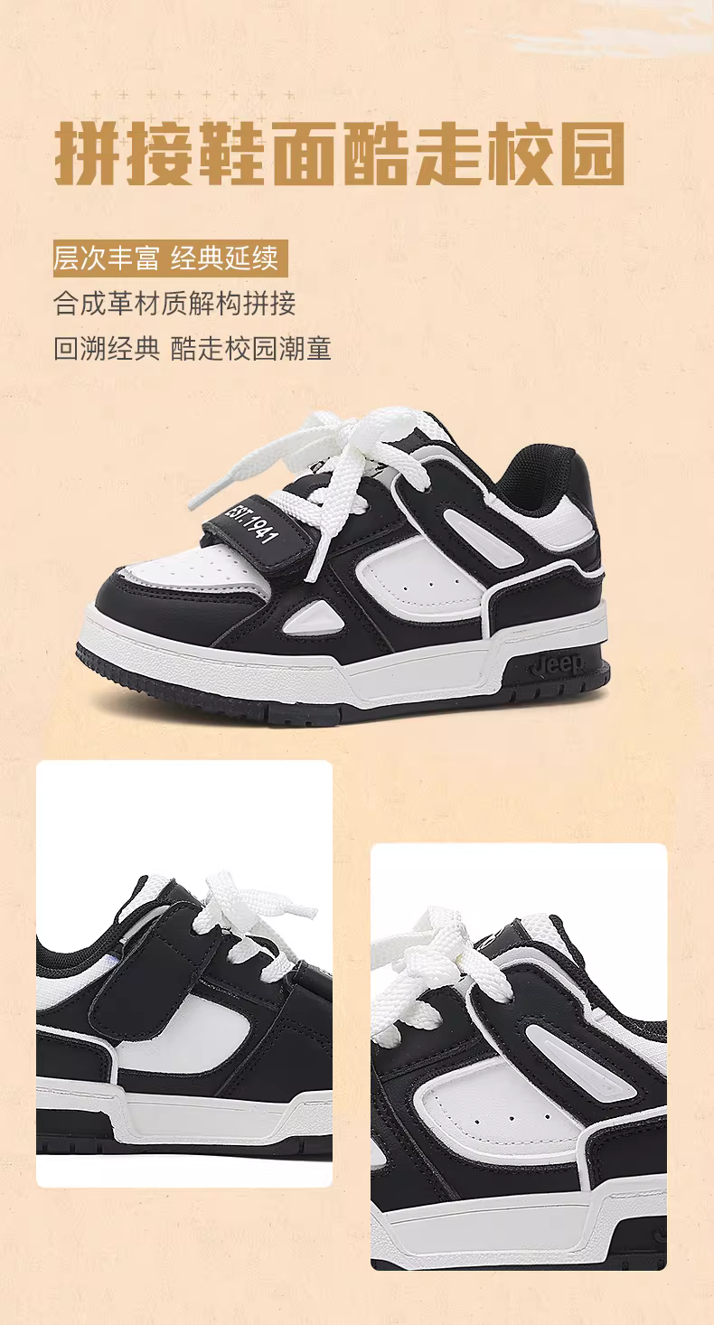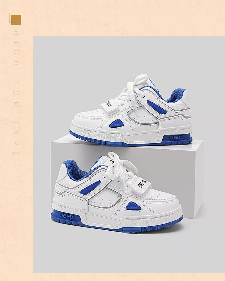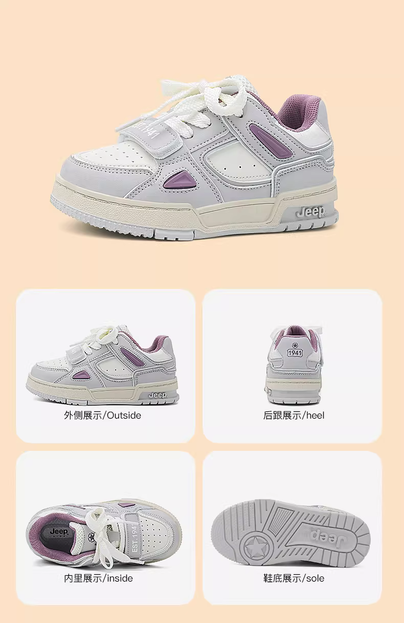 - Giày thể thao trẻ em Jeep, giày trắng, giày trẻ em Velcro, mẫu xuân thu mới 2024, giày thể thao bé trai, đế mềm