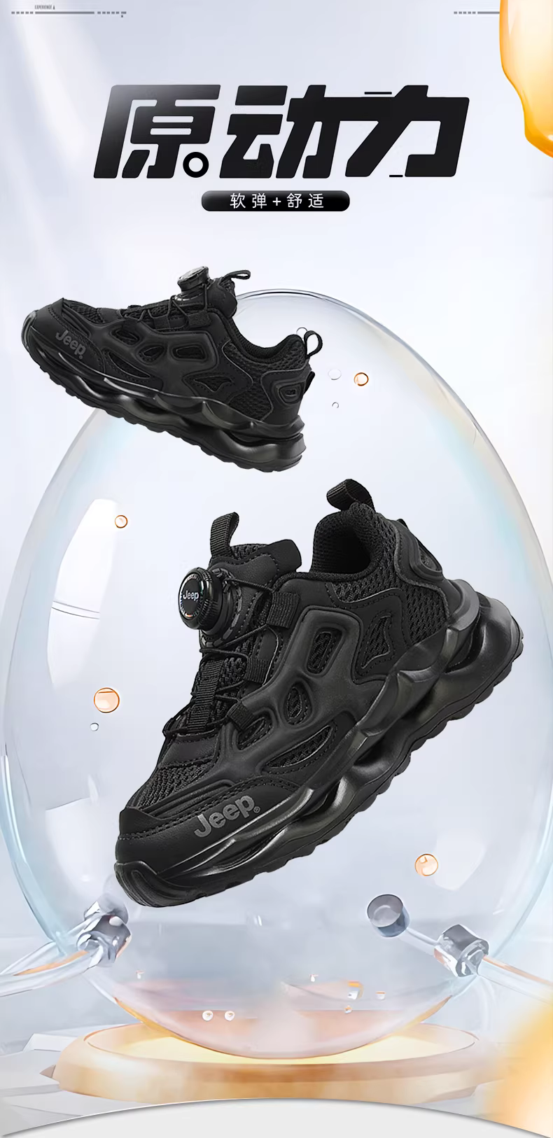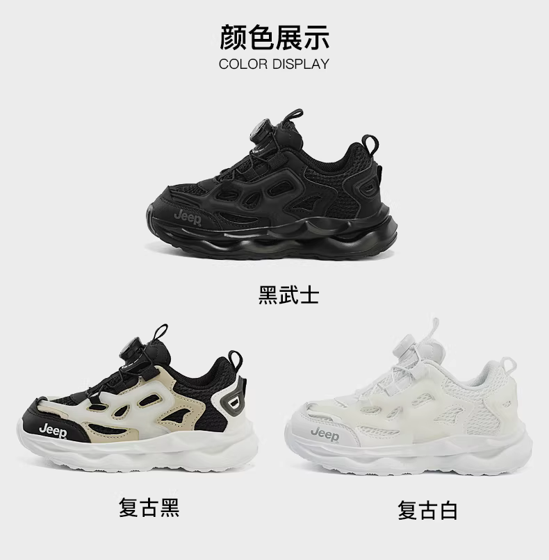 - Giày thể thao trẻ em Jeep màu đen đế mềm kiểu bố mùa xuân 2025 giày chạy lưới mới dành cho bé trai