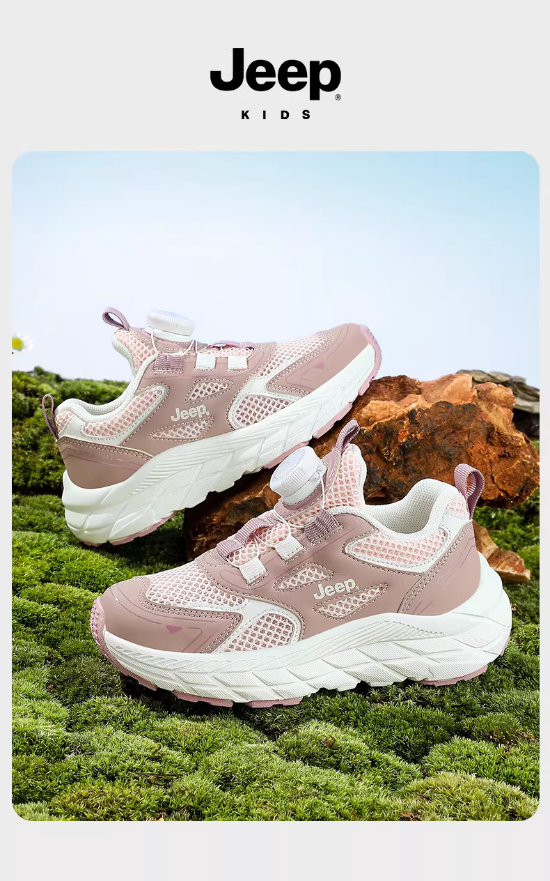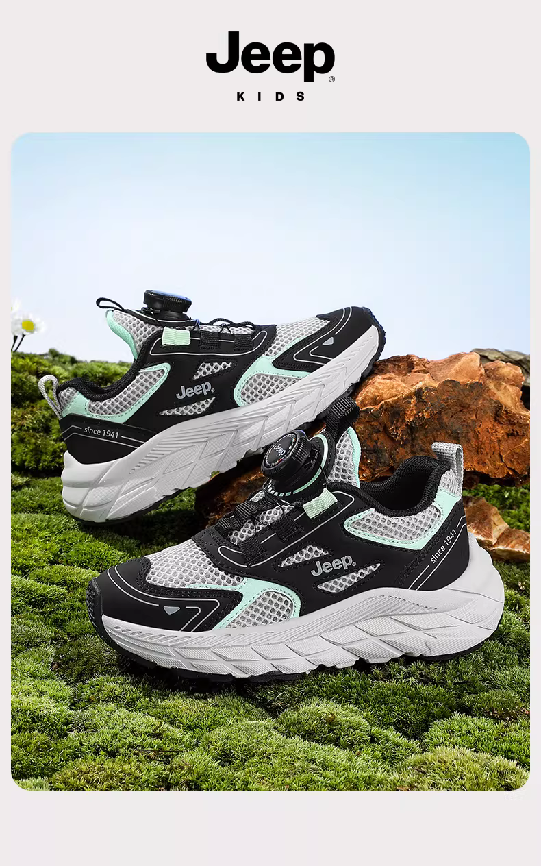 Giày thể thao trẻ em JEEP màu trắng thoáng khí 2025 xuân hè giày trắng bé trai giày lưới đế mềm giày bé gái