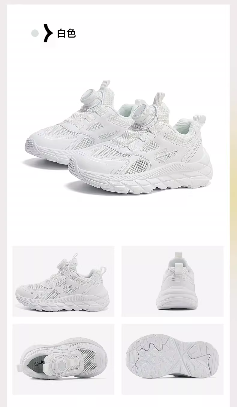 - Giày thể thao trẻ em JEEP màu trắng thoáng khí 2025 xuân hè giày trắng bé trai giày lưới đế mềm giày bé gái