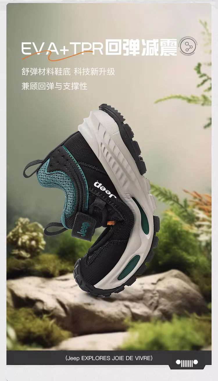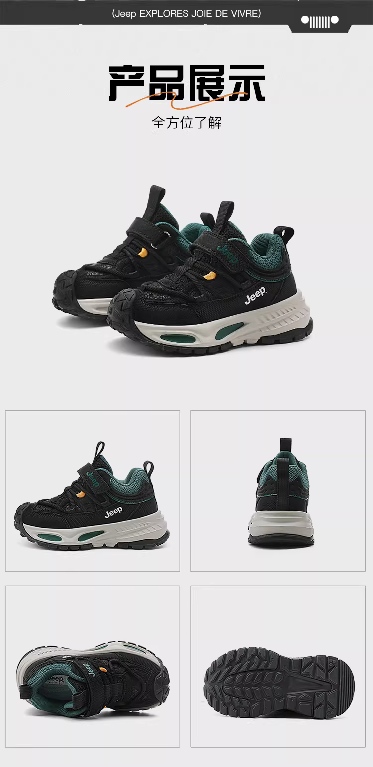 Giày thể thao trẻ em mùa thu đông kiểu dáng mới 2024, đế mềm chống trơn, kiểu dáng giày bố, có khóa dán, thương hiệu Jeep.
