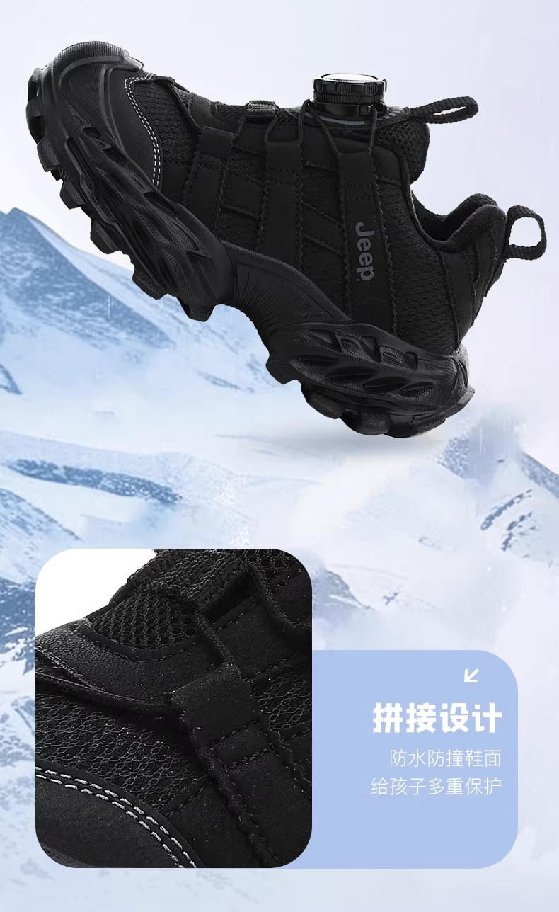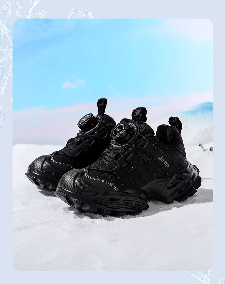 - Giày trẻ em Jeep, bốt cotton nhung trẻ em, giày đen cho bé trai và bé gái, giày mùa đông ấm áp ngoài trời mới mùa đông 2025