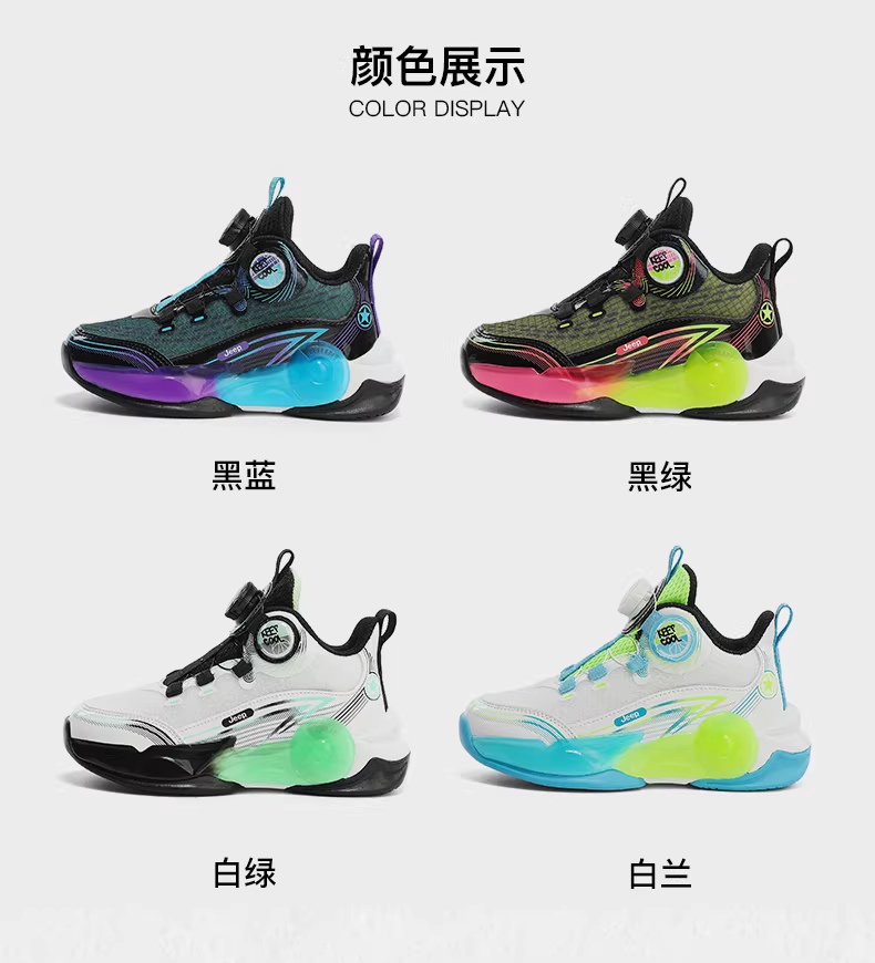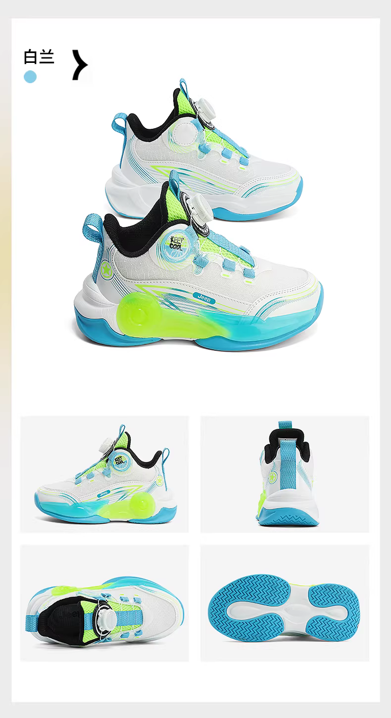 - Giày trẻ em Jeep cho bé trai, giày bóng rổ thoáng khí mới cho mùa hè 2024, giày tập chống trượt có núm.