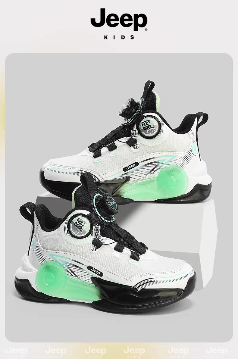 Giày trẻ em Jeep cho bé trai, giày bóng rổ thoáng khí mới cho mùa hè 2024, giày tập chống trượt có núm.