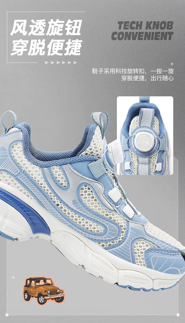 - Giày trẻ em Jeep giày bé trai giày lưới 2024 mẫu mới khóa núm giày bố giày đế mềm giày chạy bộ giày thể thao trẻ em