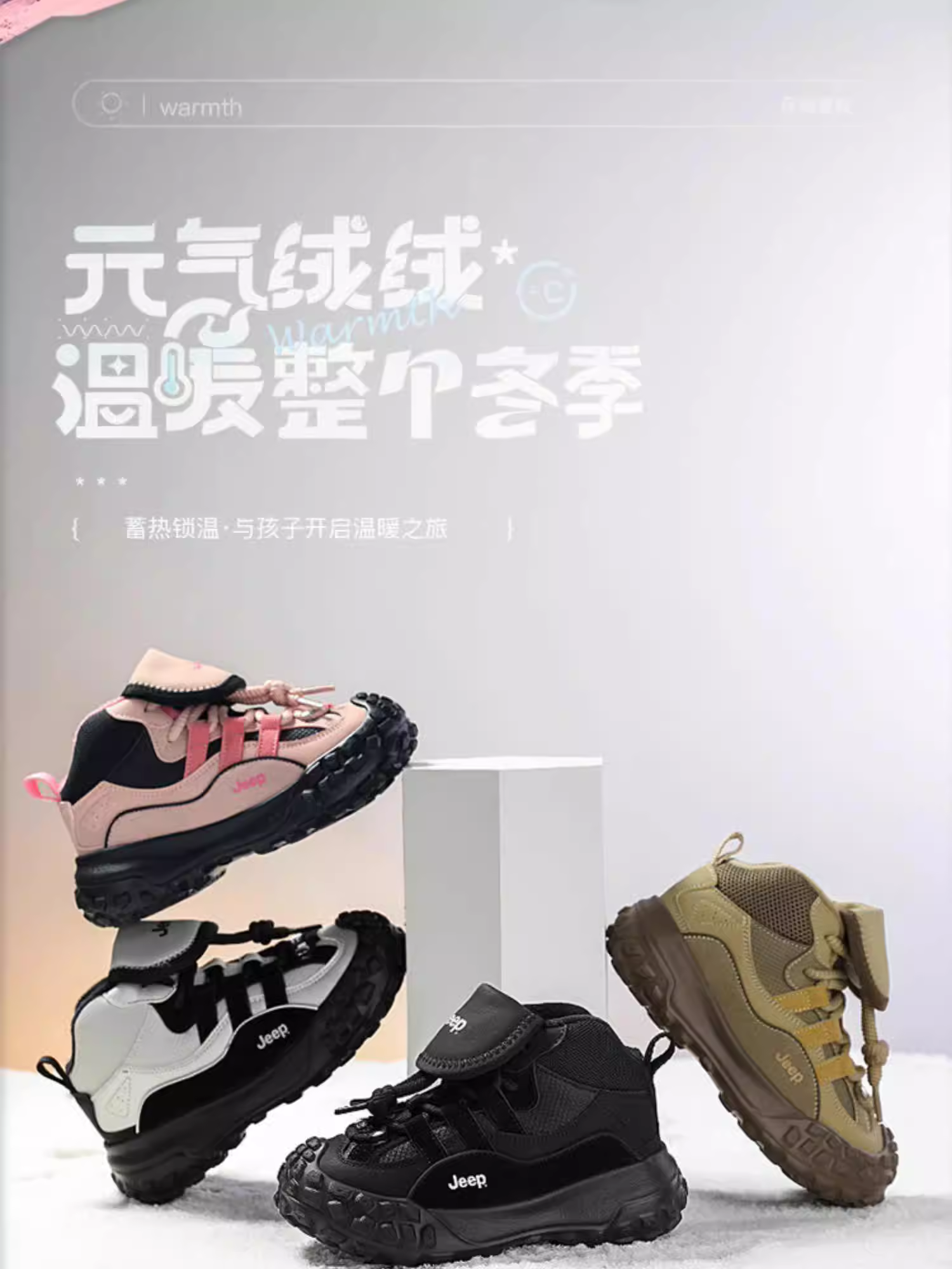 - Giày trẻ em Jeep, giày cotton dày dặn giữ ấm lót lông cừu cho bé trai và bé gái, giày thể thao cổ cao mùa đông mới 2025
