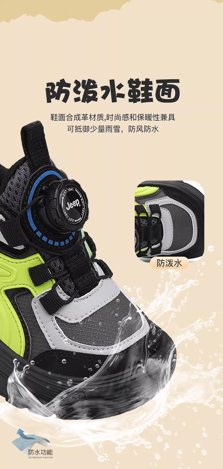 - Giày trẻ em Jeep Giày thể thao bé trai đế mềm chống trượt mùa thu đông 2024 mới có núm giày đi bộ đường dài ngoài trời Giày trẻ em