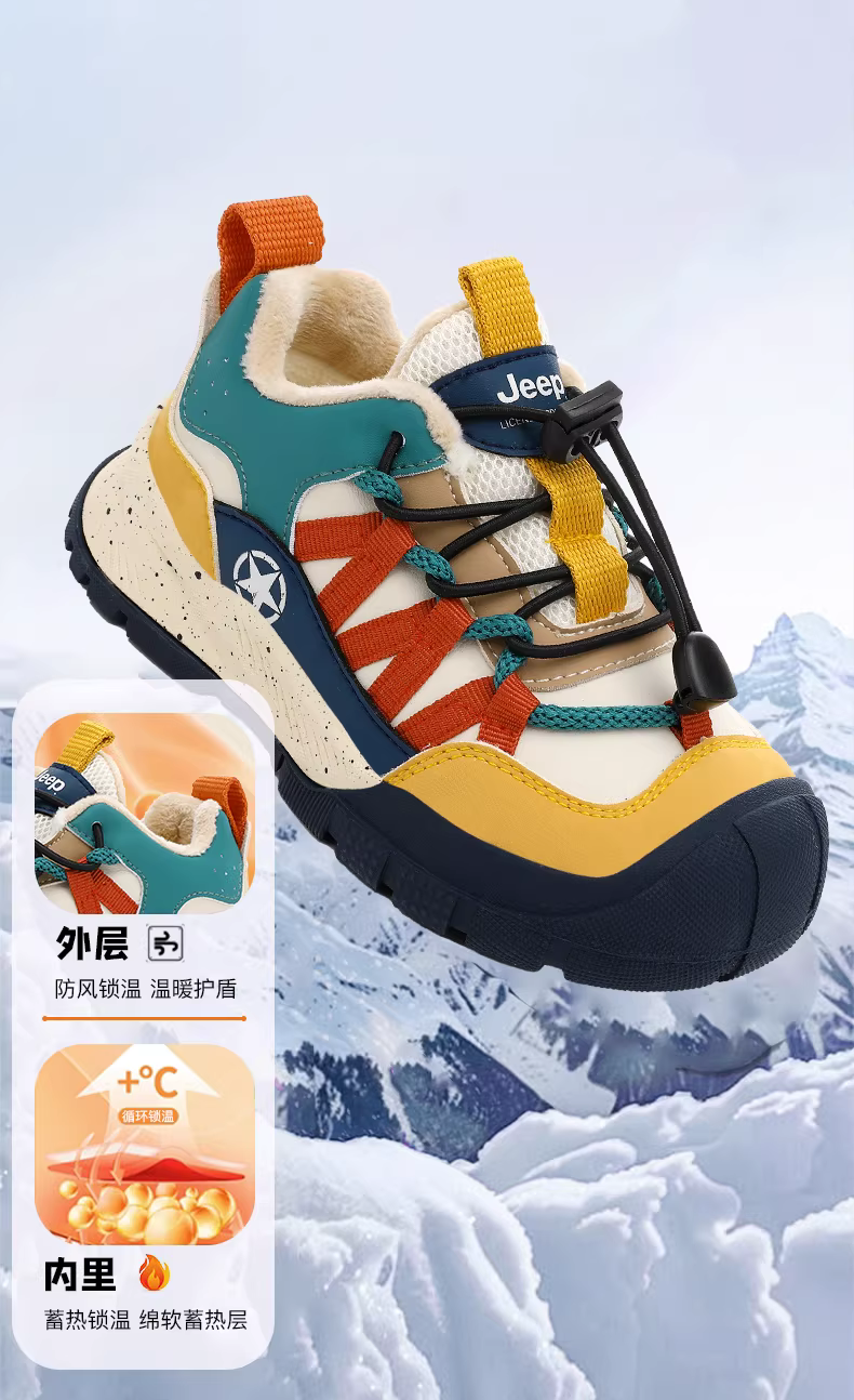 - Giày trẻ em Jeep, giày thể thao bé trai, mẫu mới 2025, mùa đông, lót lông cừu giữ ấm, giày bố bé trai hai lớp bông, đi chơi ngoài trời, phong cách thường ngày