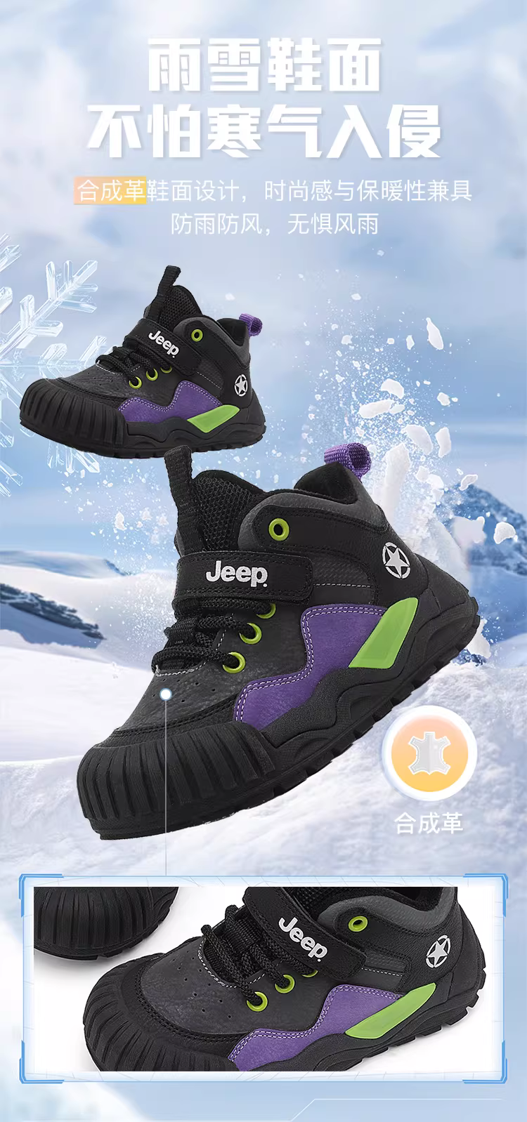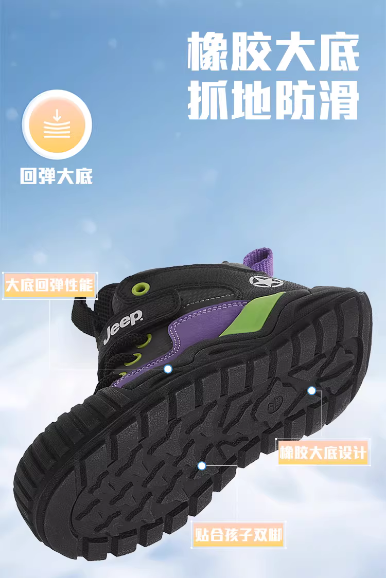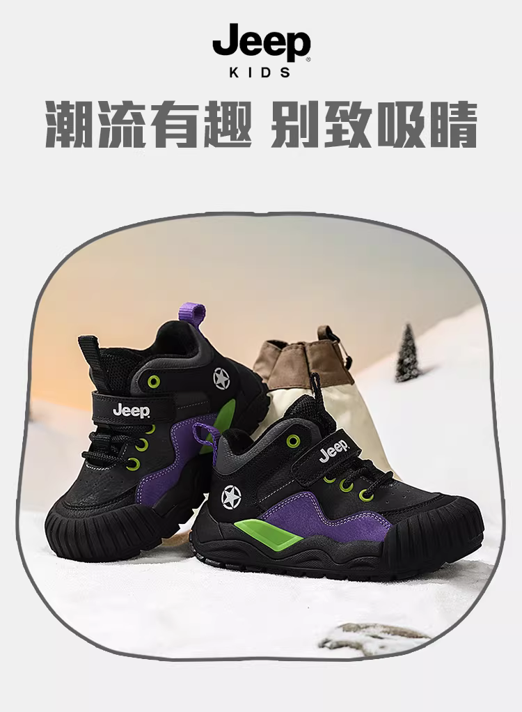 - Giày trẻ em Jeep Giày thể thao lót lông màu đỏ năm mới 2025 Giày cotton dày mới mùa đông dành cho bé trai và bé gái