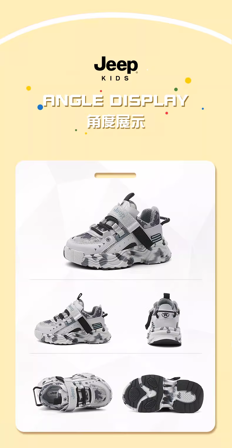 - Giày trẻ em Jeep, giày thể thao trẻ em hợp thời trang và cá tính, công nghệ chống sốc đàn hồi nhẹ, giày chạy bộ khóa xoay, phong cách mùa thu 24, thoáng khí