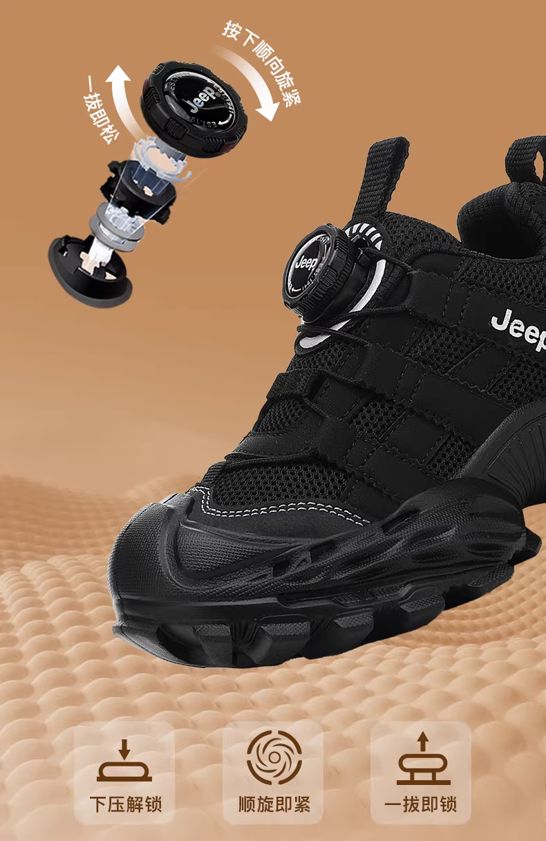 - Giày trẻ em Jeep màu đen, giày thể thao bé trai mùa thu, giày trẻ em 2025 kiểu mới thời thượng, giày lưới cá tính cho bé trai