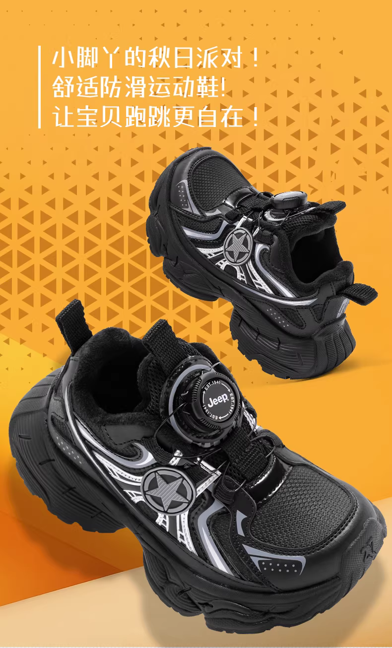 - Giày trẻ em Jeep màu đen kiểu bố mùa thu đông, giày bông nhẹ, cài nút, dành cho bé gái, mẫu mới 2025, giày thể thao lông mềm cho bé trai
