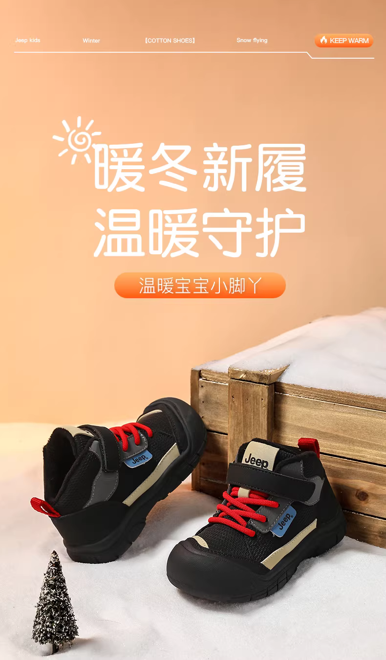 - Giày trẻ em Jeep mùa đông, lót lông cừu giữ ấm, giày thể thao trẻ nhỏ 2025, giày cotton mới cho bé trai