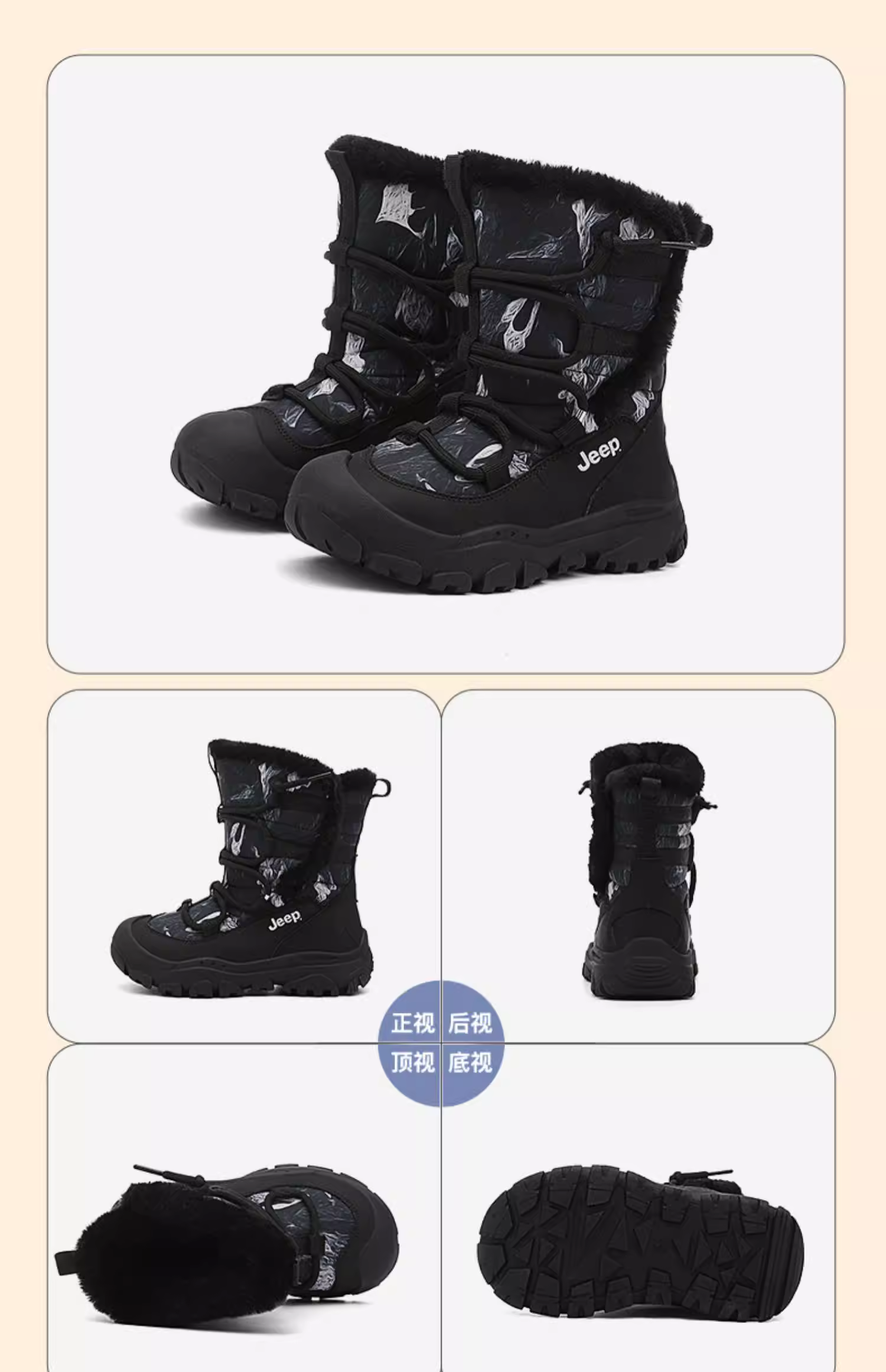 - Giày trẻ em Jeep, ủng tuyết bé trai mùa đông 2025, giày đỏ Tết, giày lót lông cừu, giày bông dày cho bé, ủng bông bé gái
