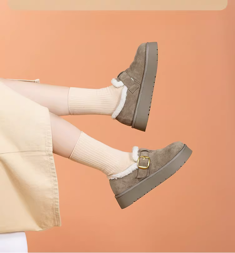 - Giày tuyết Dadong dành cho nữ 2025, mẫu mới mùa đông, dày dặn, ấm áp, lót bông, đế dày, kiểu Birkenstock, giày tuyết nữ