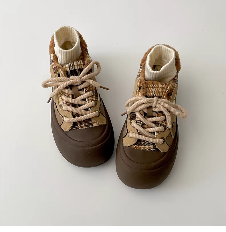 Giày vải đế dày màu đỏ cổ điển dành cho nữ, kiểu dáng thu đông 2025 mới, giày thể thao cổ thấp ấm áp có lớp lót lông cừu dành cho người nhỏ nhắn.