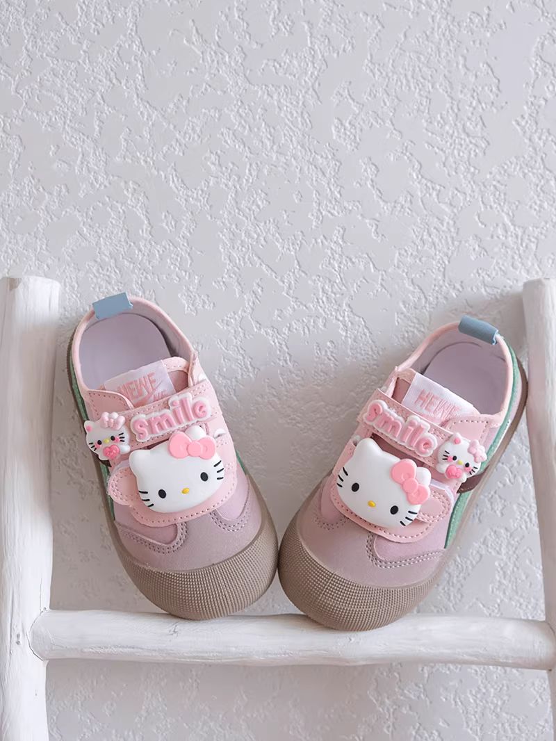 Giày vải màu hồng có khóa dán cho bé gái, giày mẫu giáo, giày trẻ em trong nhà nhẹ, chống trượt, giày thể thao mùa xuân thu cho bé