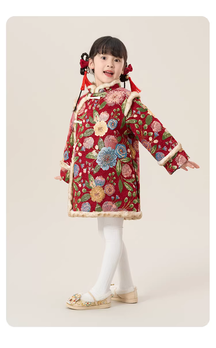 - Hanfu dành cho bé gái, váy sườn xám cho bé gái, quần áo mùa đông phong cách Trung Hoa, trang phục trang trọng cho bé gái một tuổi, quần áo phong cách Trung Hoa mới cho trẻ em trong mùa đông.