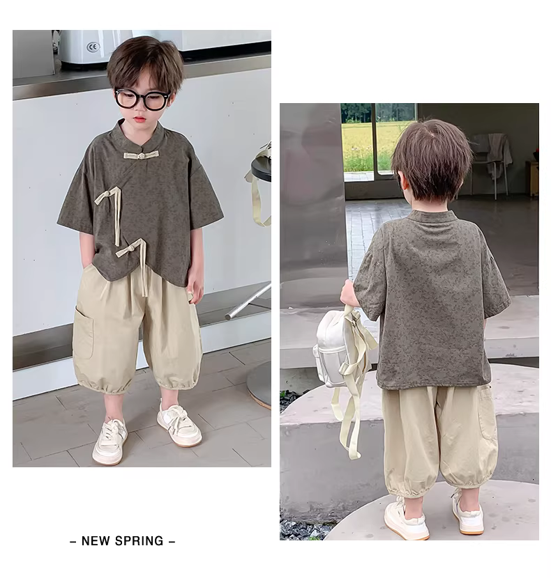 - Hanfu dành cho bé trai Mùa hè 2025 Phong cách truyền thống Trung Quốc phong cách cao cấp Trang phục mùa hè theo phong cách Trung Quốc cải tiến Bộ quần áo trẻ em mẫu giáo Hợp thời trang