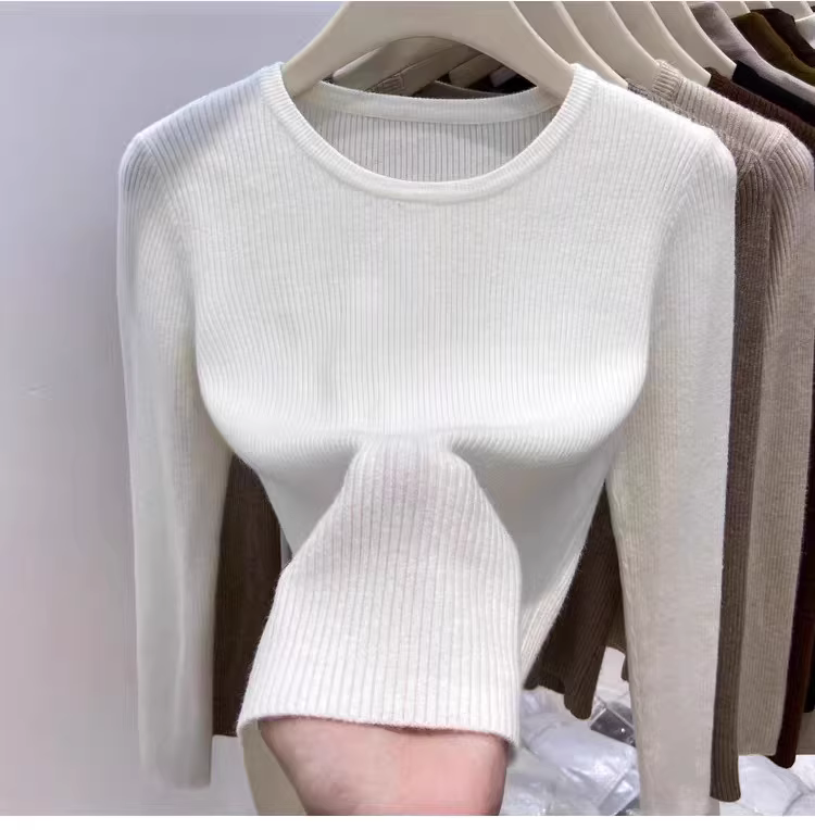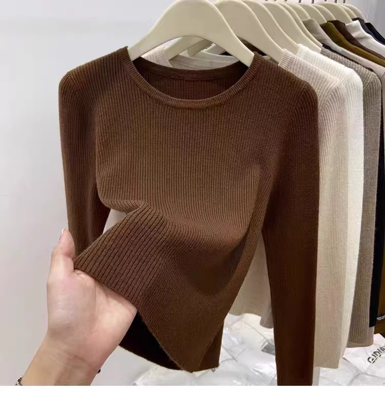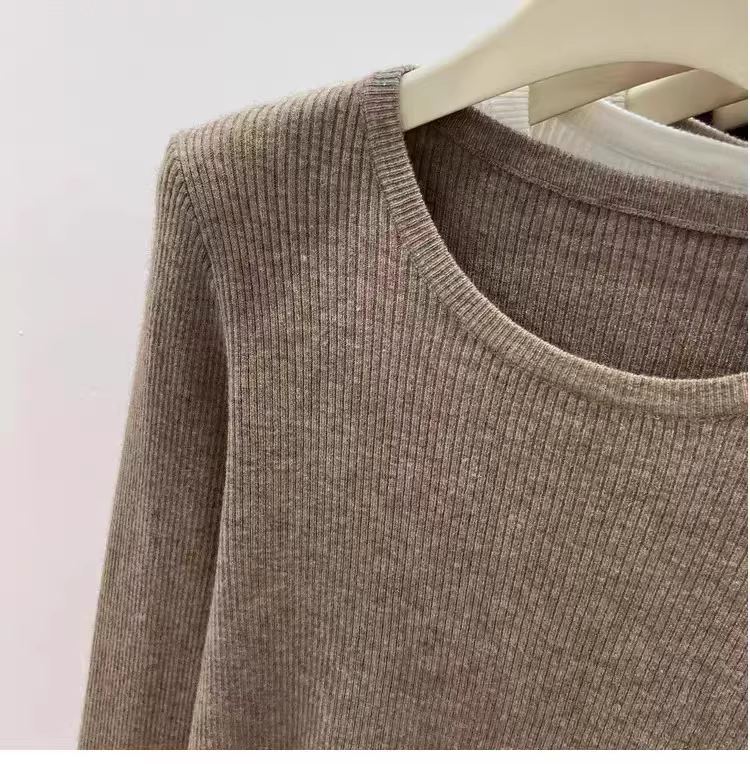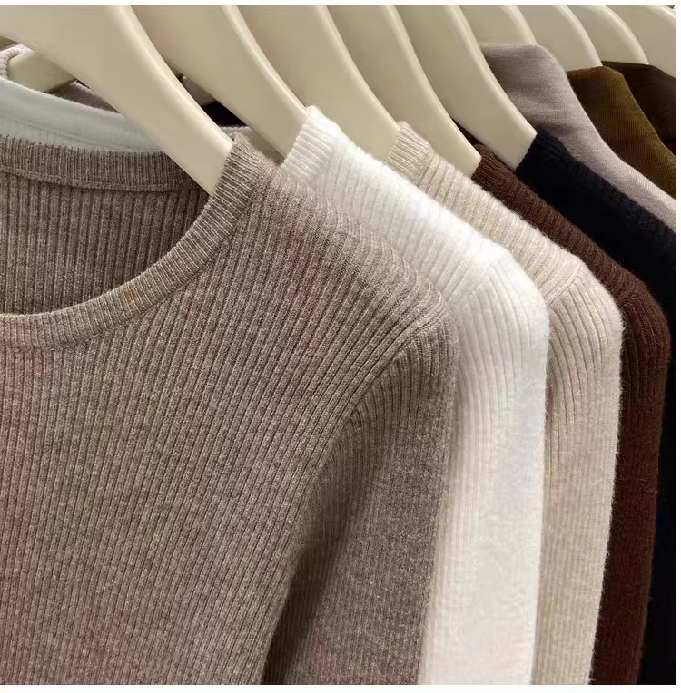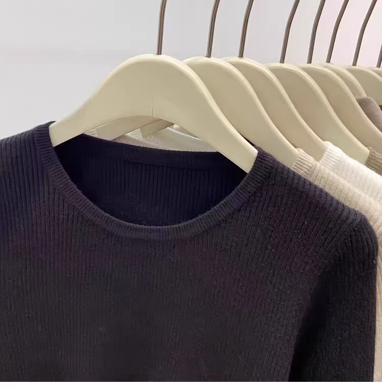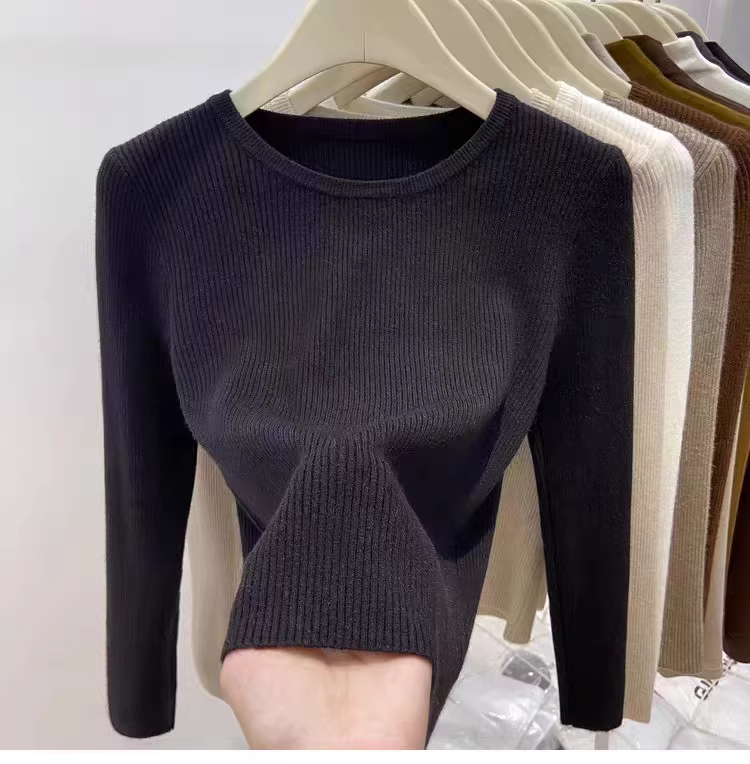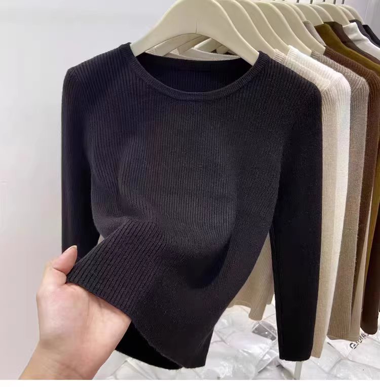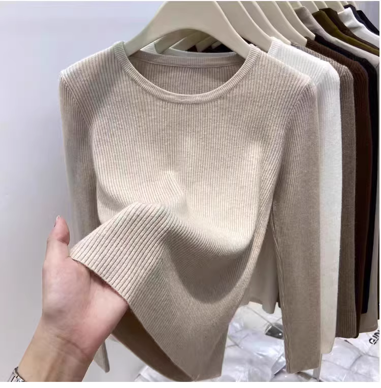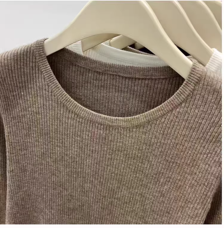 Hàng thanh lý áo len nữ có mác cắt, áo lót dài tay mặc mùa thu đông, áo thun cổ tròn gân mới, kiểu dáng thời thượng.
