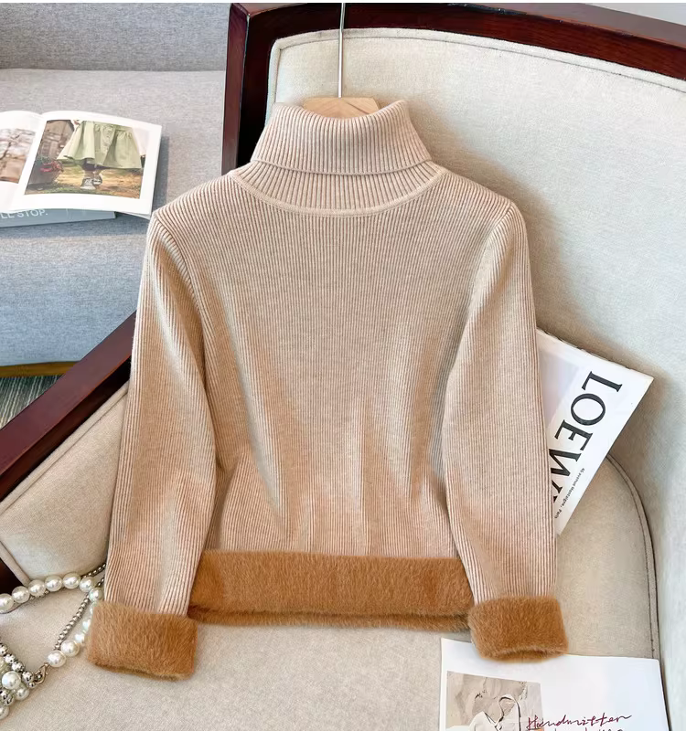 Hàng thanh lý áo nữ có mác cắt, lót lông cừu, dày dặn, áo len cổ cao, kiểu dáng thời trang thu đông.