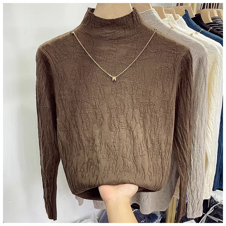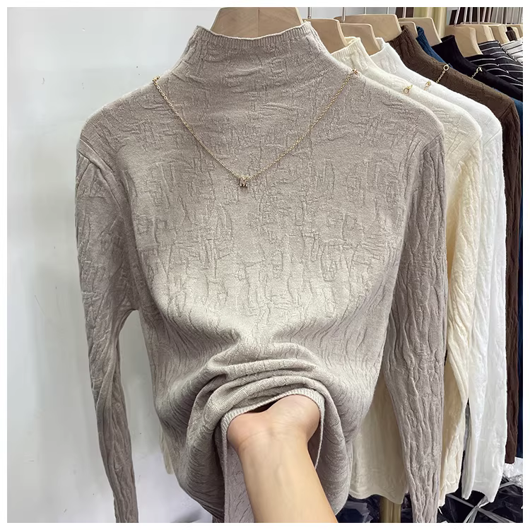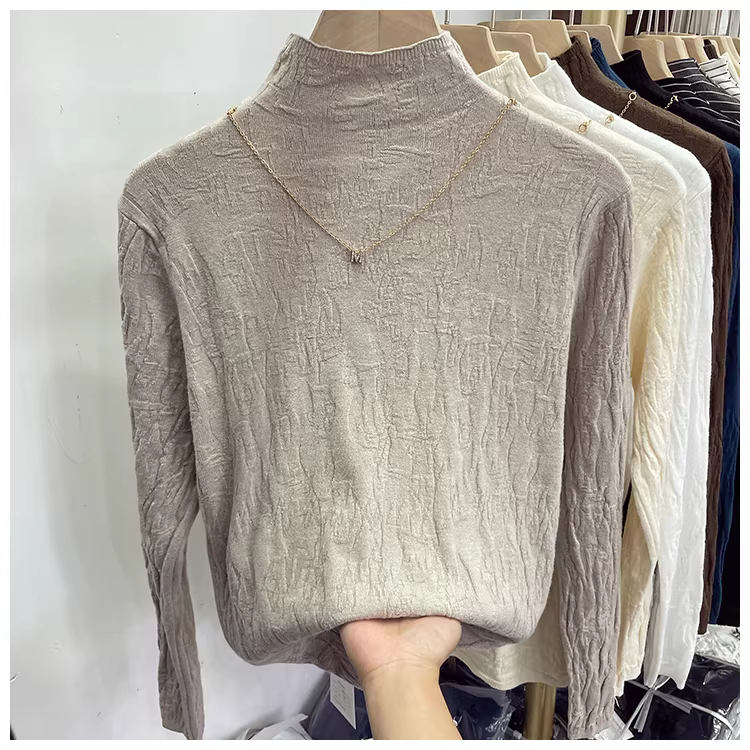 Hàng thanh lý áo quần nữ thiết kế, đã gỡ mác, kiểu dáng châu Âu, áo kiểu cổ nửa cao phối dây, áo thun dài tay ôm sát chất liệu dệt kim sườn.