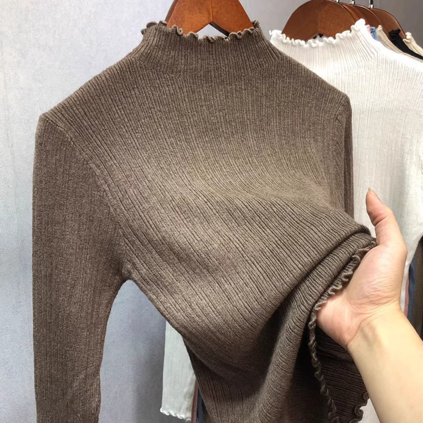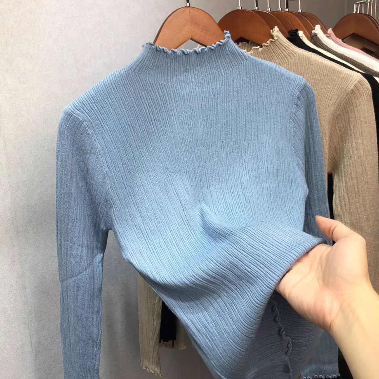 Hàng thanh lý: Hàng xuất dư, cắt mác, viền bèo nhún, áo len nữ cổ nửa cao, áo len mặc lớp, áo thời trang thu đông.