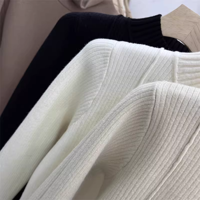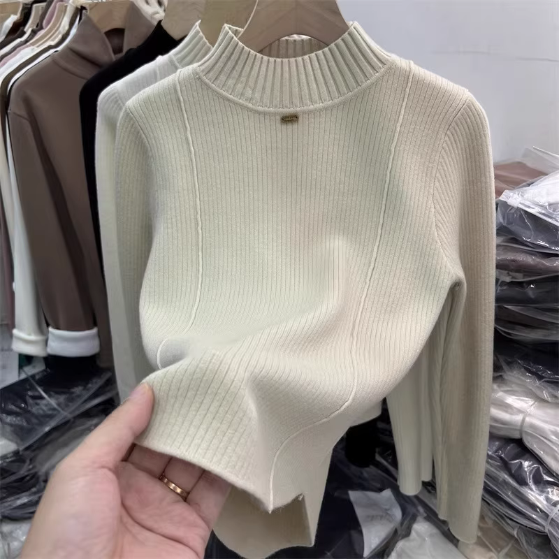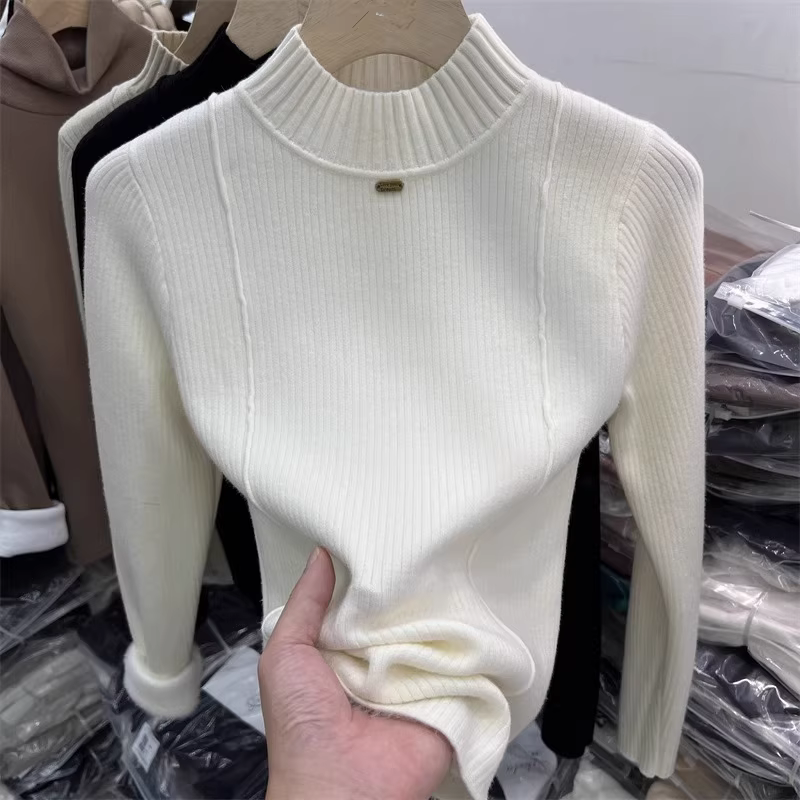 - Hàng thanh lý quần áo nữ châu Âu, áo len giảm giá đã tháo mác, lót lông cừu dày dặn, áo len giữ nhiệt cổ lọ nửa cao mùa đông có lớp lông cừu tích hợp.