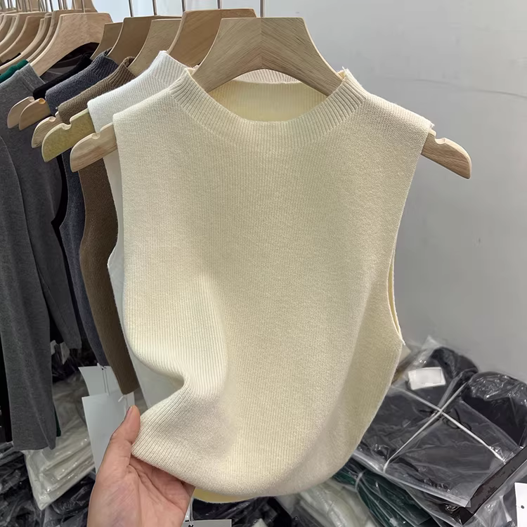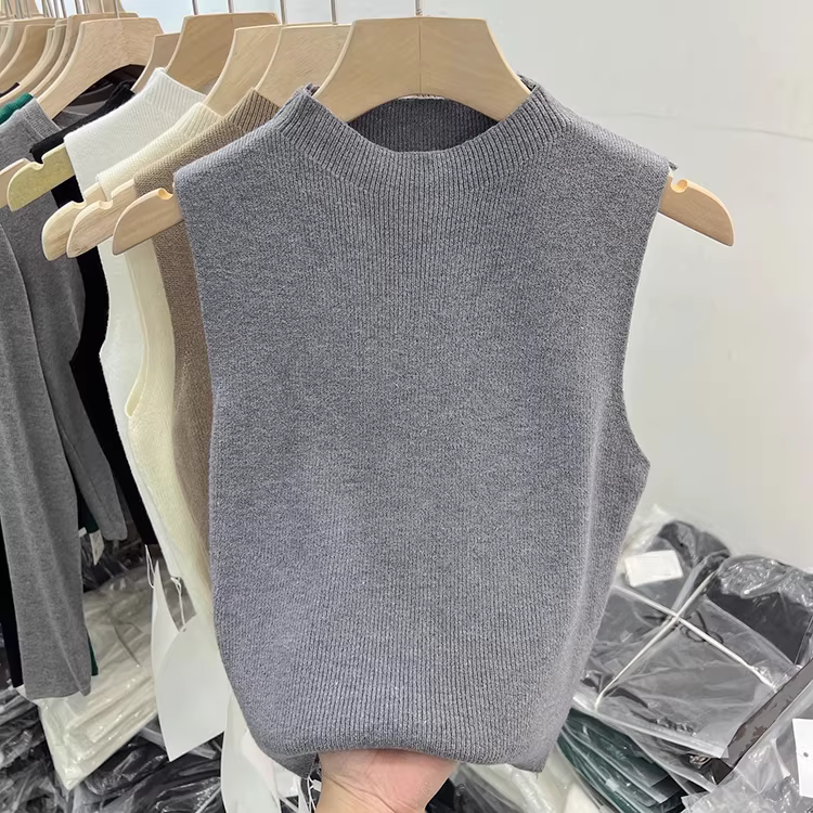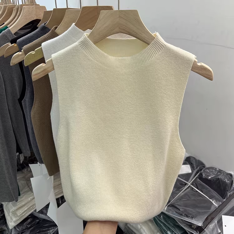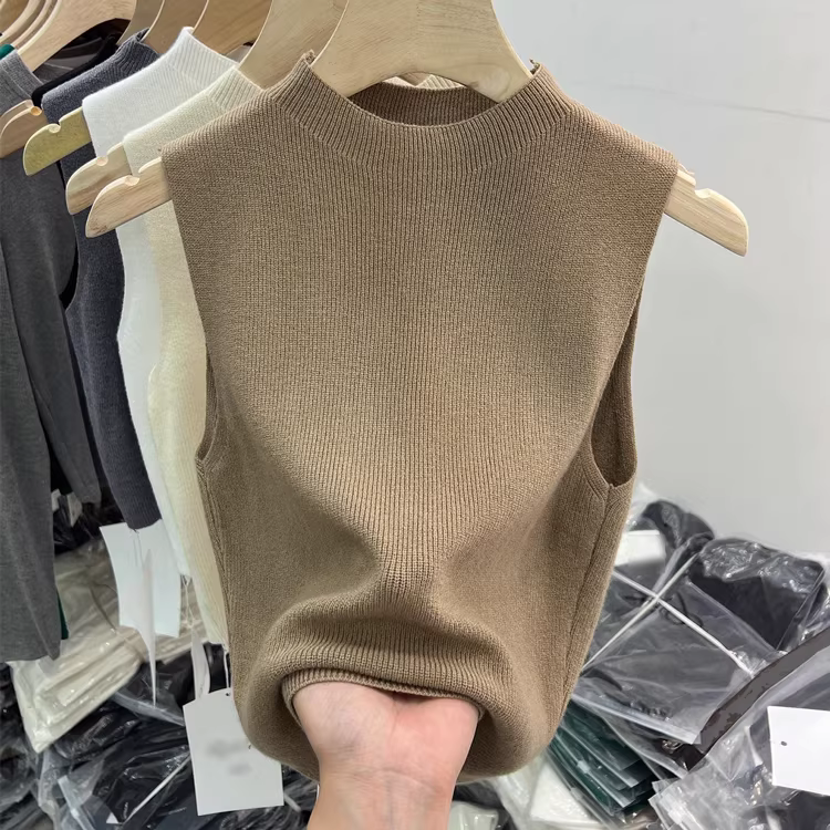 Hàng thanh lý quần áo nữ châu Âu, áo thun dệt kim trơn không nhãn mác, kiểu ôm sát, áo ba lỗ không tay, thời trang.