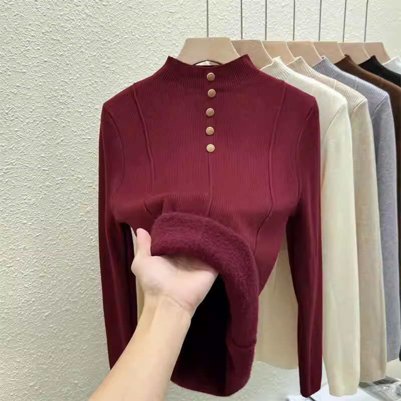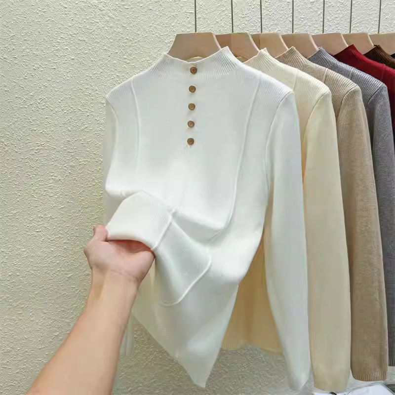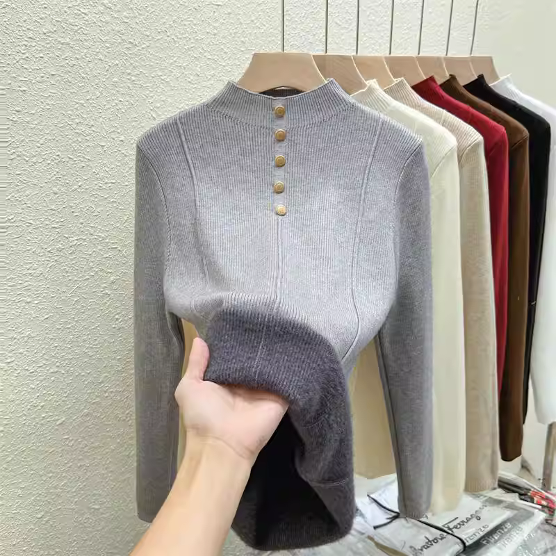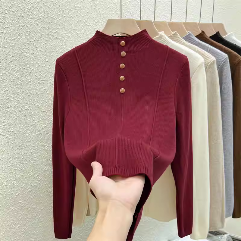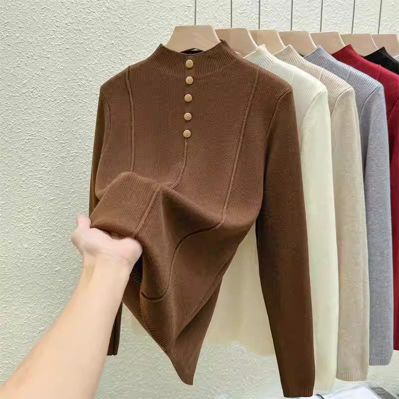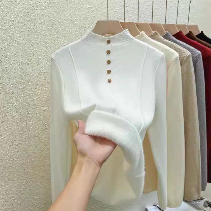 Hàng thanh lý quần áo nữ châu Âu, có mác cắt, áo len cổ lọ nửa cao lót lông cừu, áo lót dày dặn thời trang mặc trong mùa đông.