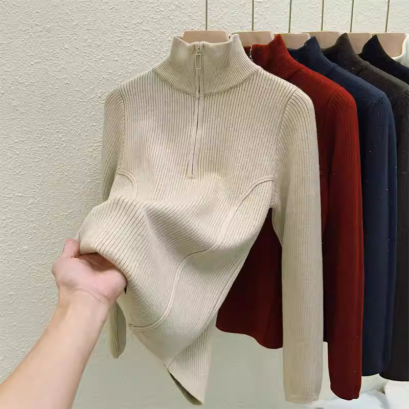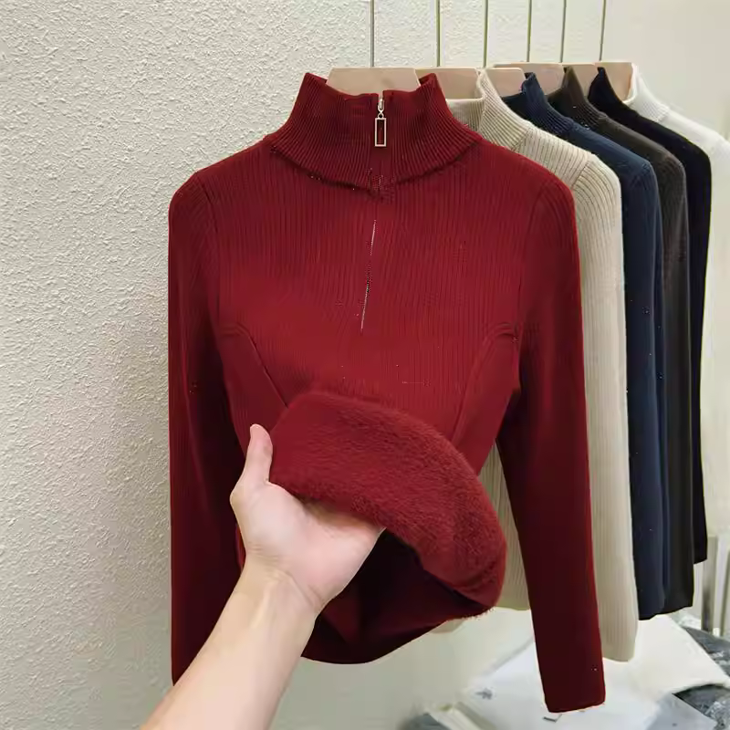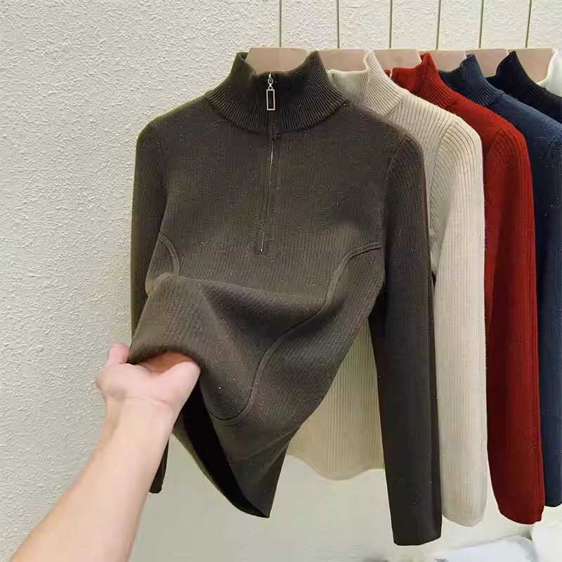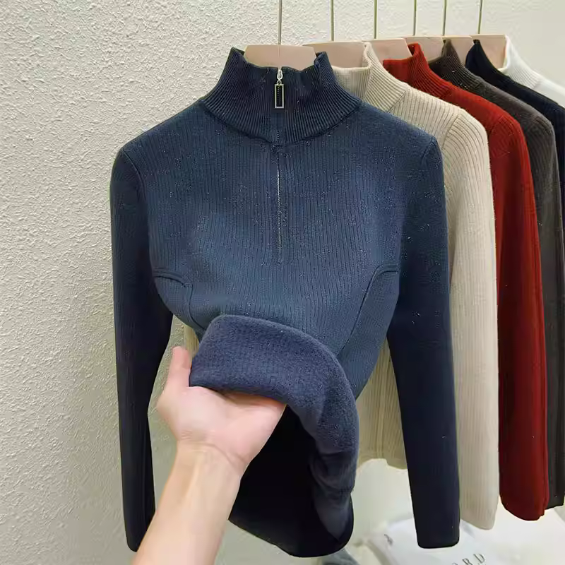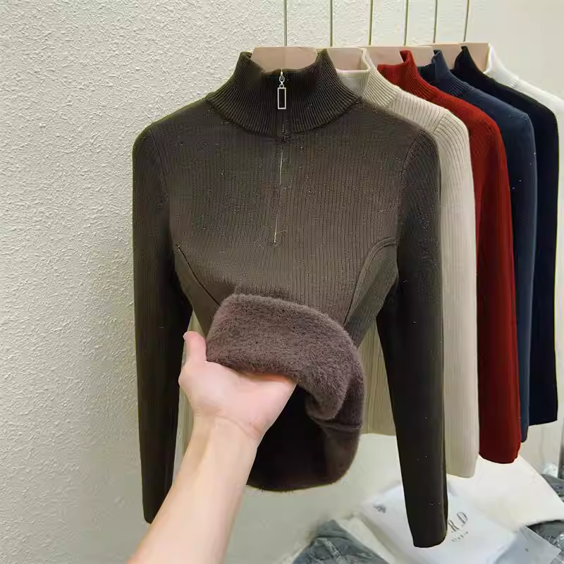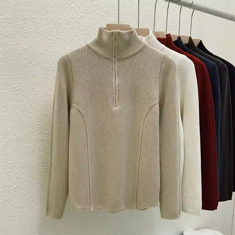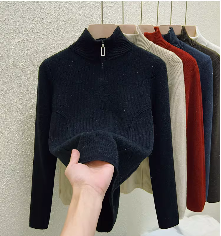 - Hàng thanh lý quần áo nữ châu Âu, có mác cắt, áo len dệt kim dài tay, lớp lót giữ ấm mùa đông, áo lót nửa khóa kéo tích hợp lớp lông cừu.