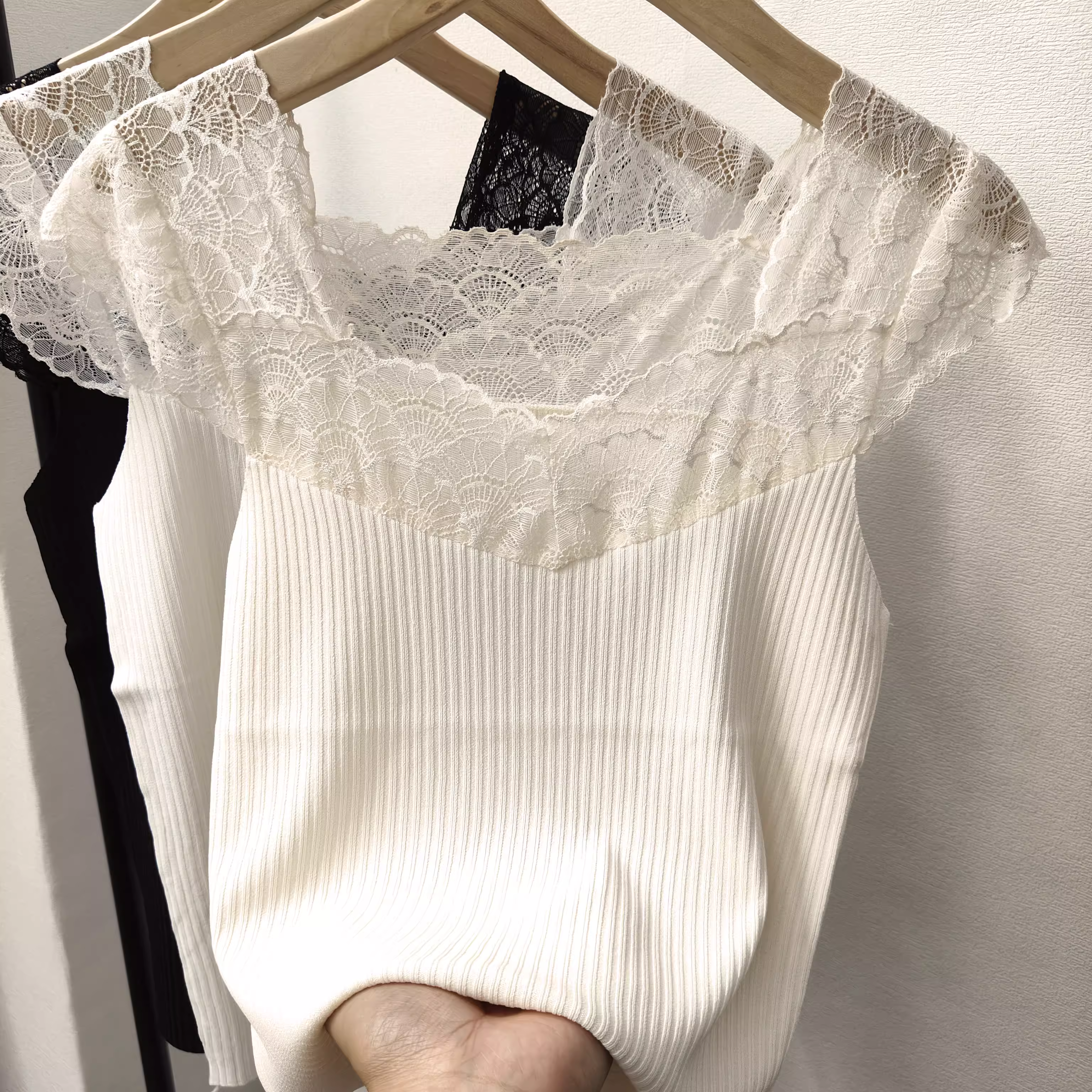 - Hàng thanh lý quần áo nữ châu Âu, đã gỡ mác, áo camisole phối ren, áo mỏng gợi cảm để mặc lớp trong dưới áo blazer.