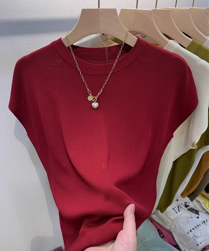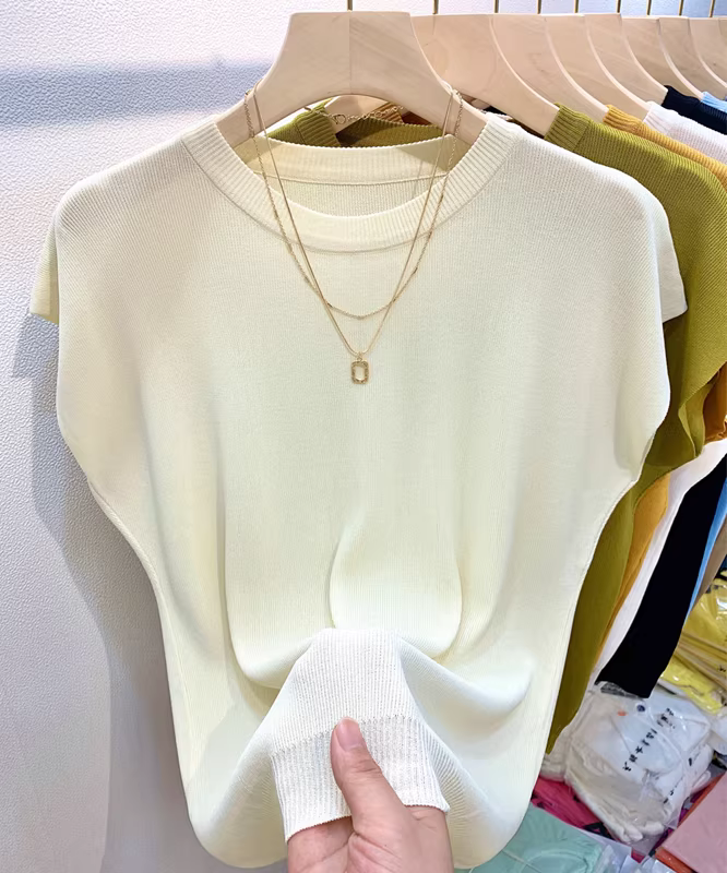 - Hàng thanh lý quần áo nữ châu Âu, đã gỡ mác, áo thun dệt kim thời trang đa năng, màu trơn đơn giản, áo lót kiểu dáng thời trang rộng rãi