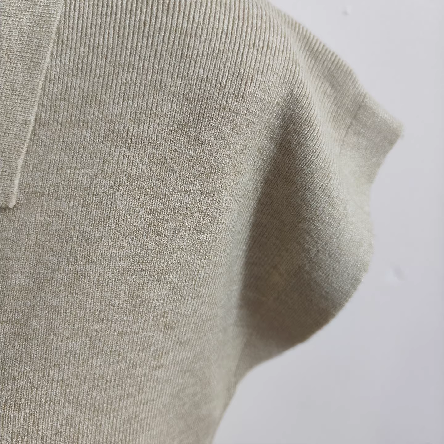 Hàng thanh lý quần áo nữ châu Âu, đã gỡ mác, hàng mới mùa xuân/thu, áo len cổ Polo, không tay, ôm dáng, kiểu dáng độc đáo.