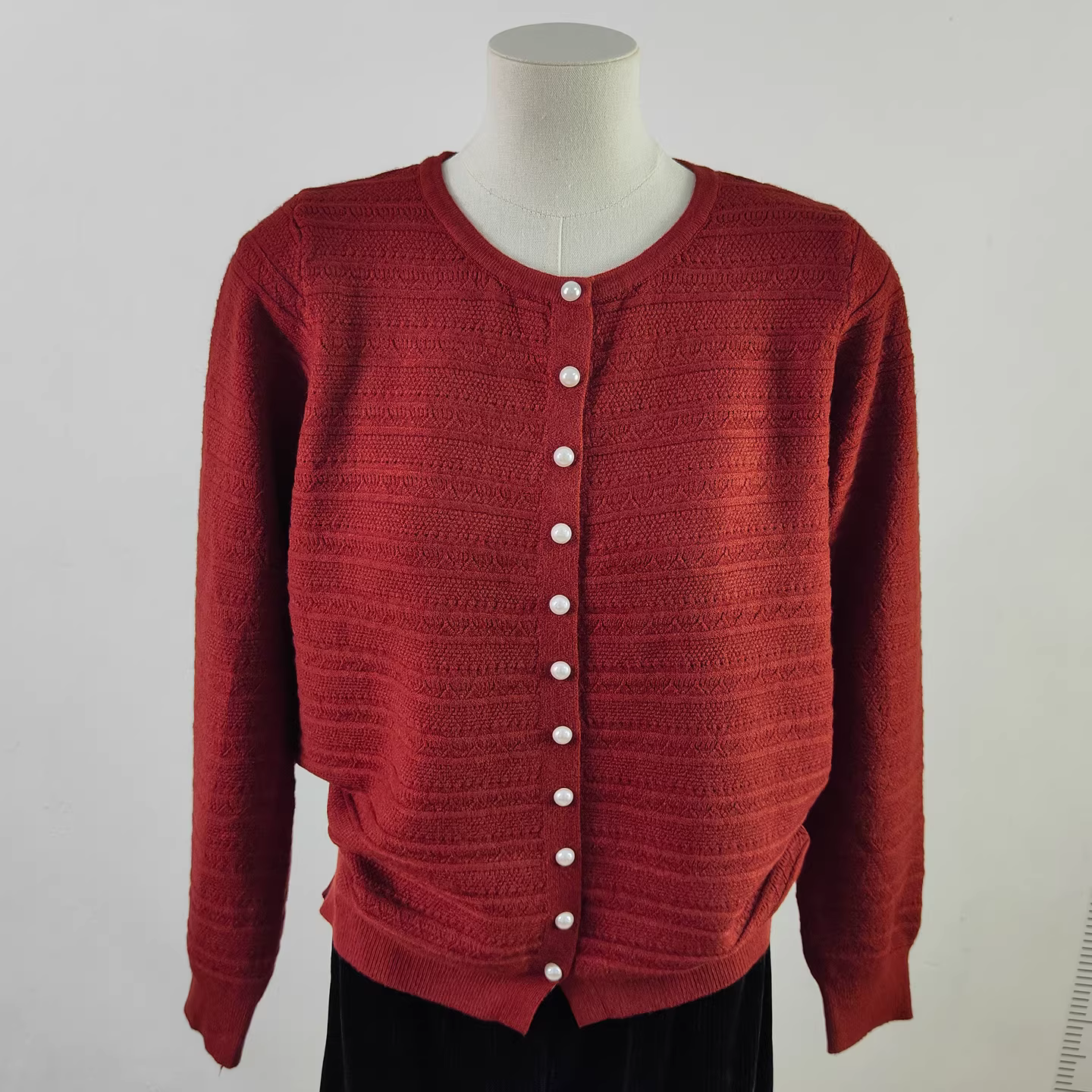 Hàng thanh lý quần áo nữ, đã gỡ mác, kiểu dáng châu Âu, áo cardigan len cài nút, kiểu thu đông mới, ôm dáng, màu trơn.