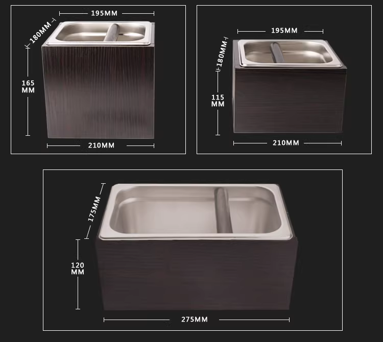 Hộp đựng bã cà phê bằng thép không gỉ cho máy pha cà phê thương mại, dụng cụ quán cà phê, quầy bar