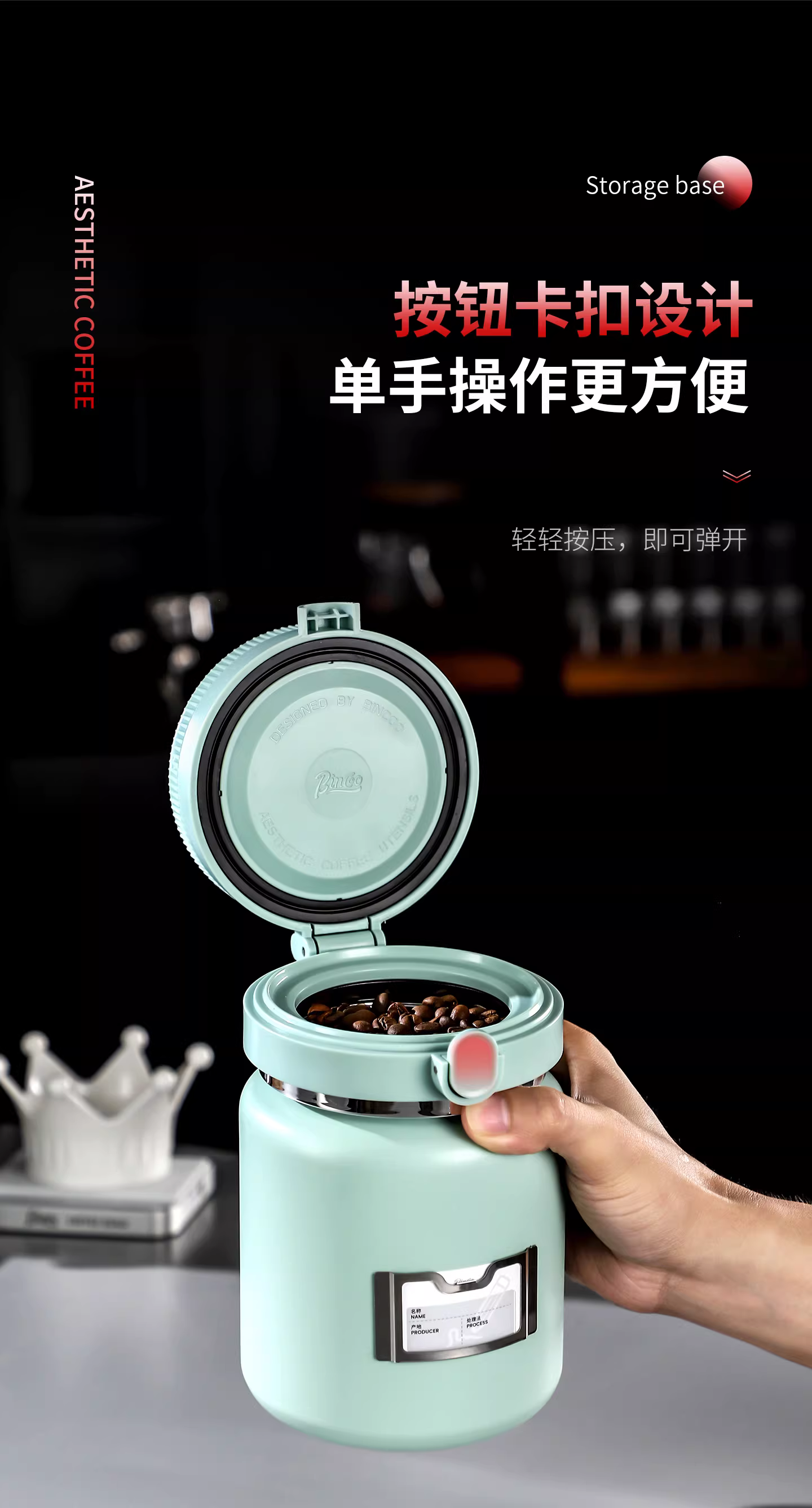 Hộp đựng cà phê hạt Bincoo, kín chân không, hộp đựng cà phê bột, cấp thực phẩm, có chức năng theo dõi độ ẩm và ghi ngày tháng