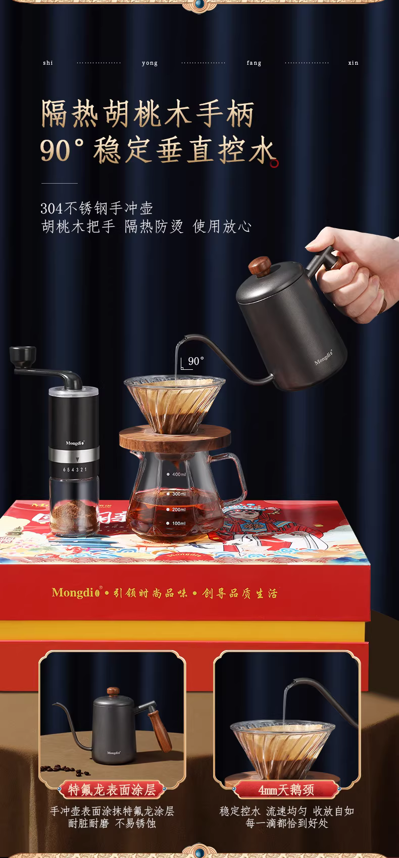 - Hộp quà tặng bộ cà phê pha thủ công kiểu Mỹ, ấm pha cà phê thủ công, máy pha cà phê, máy xay cầm tay, thiết bị ngoài trời