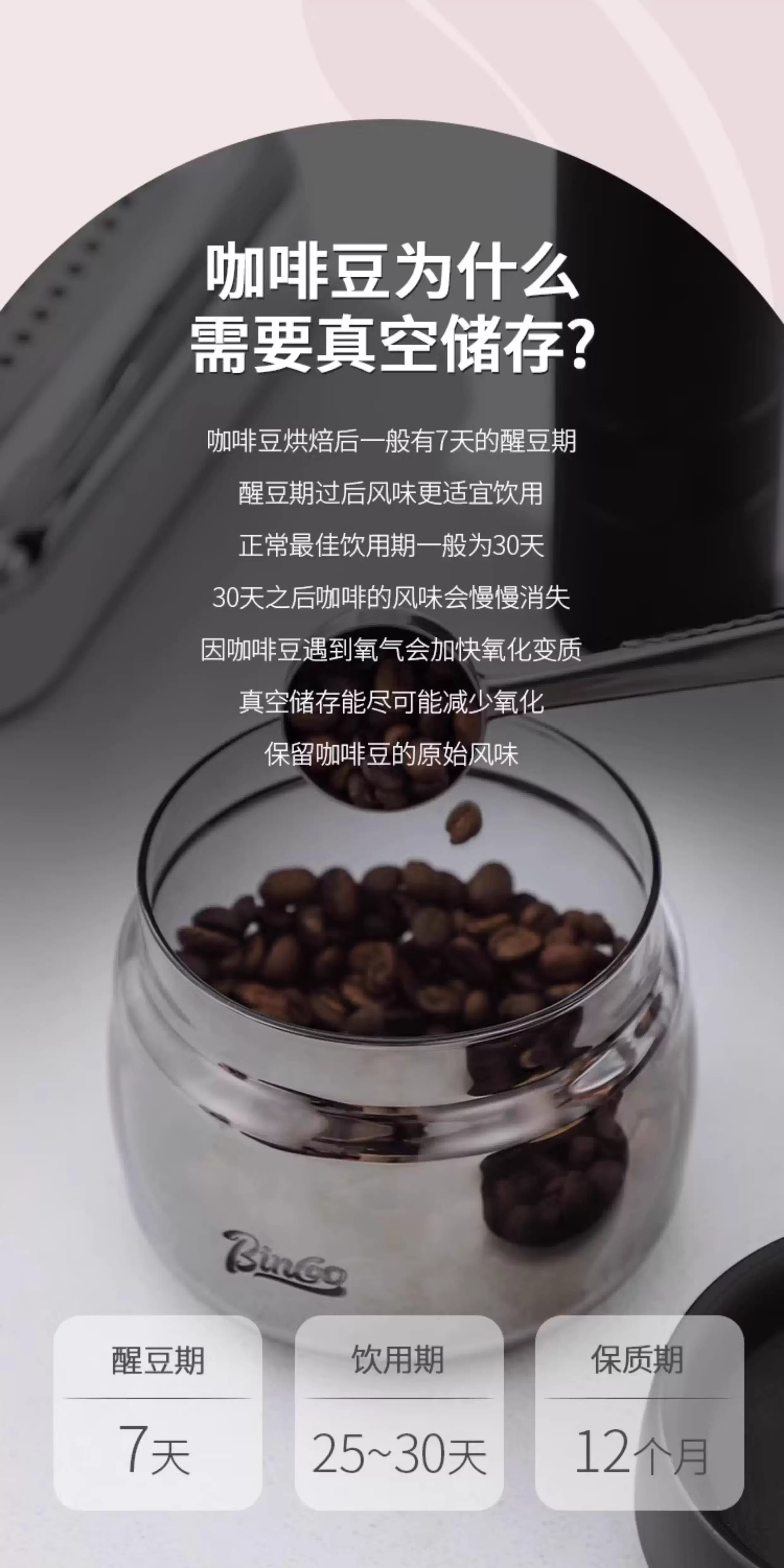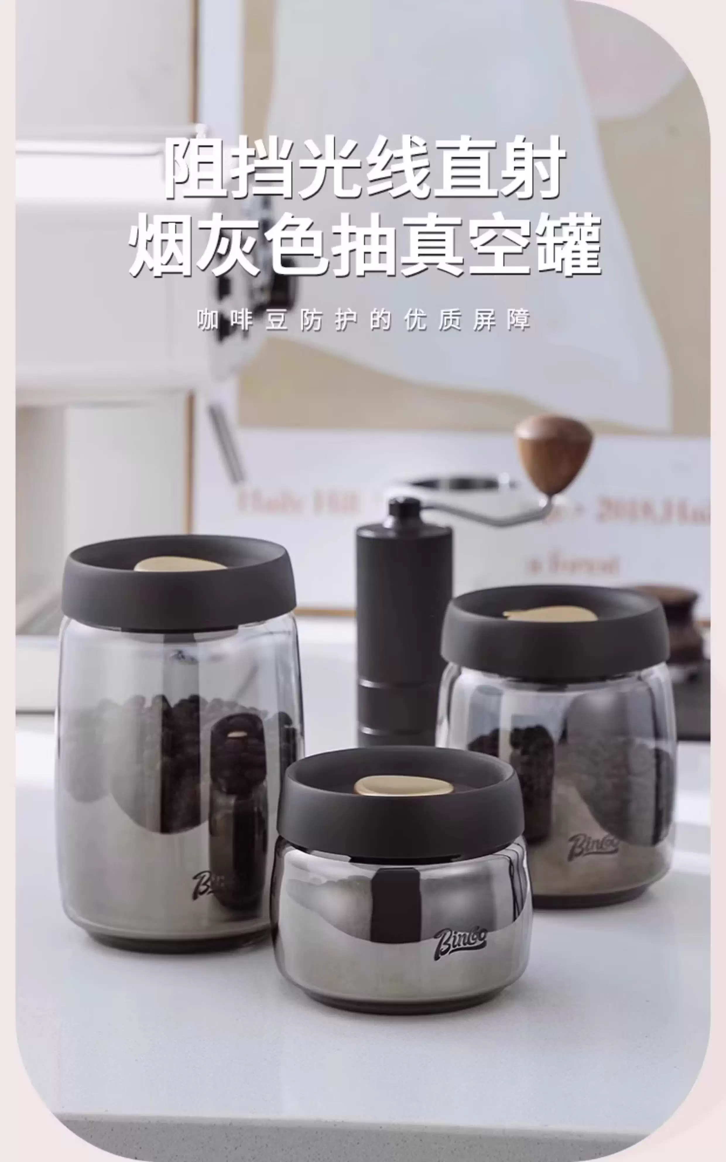 Hũ đựng cà phê Bincoo bằng thủy tinh, kín chân không, kiểu nhấn, dùng để đựng bột cà phê