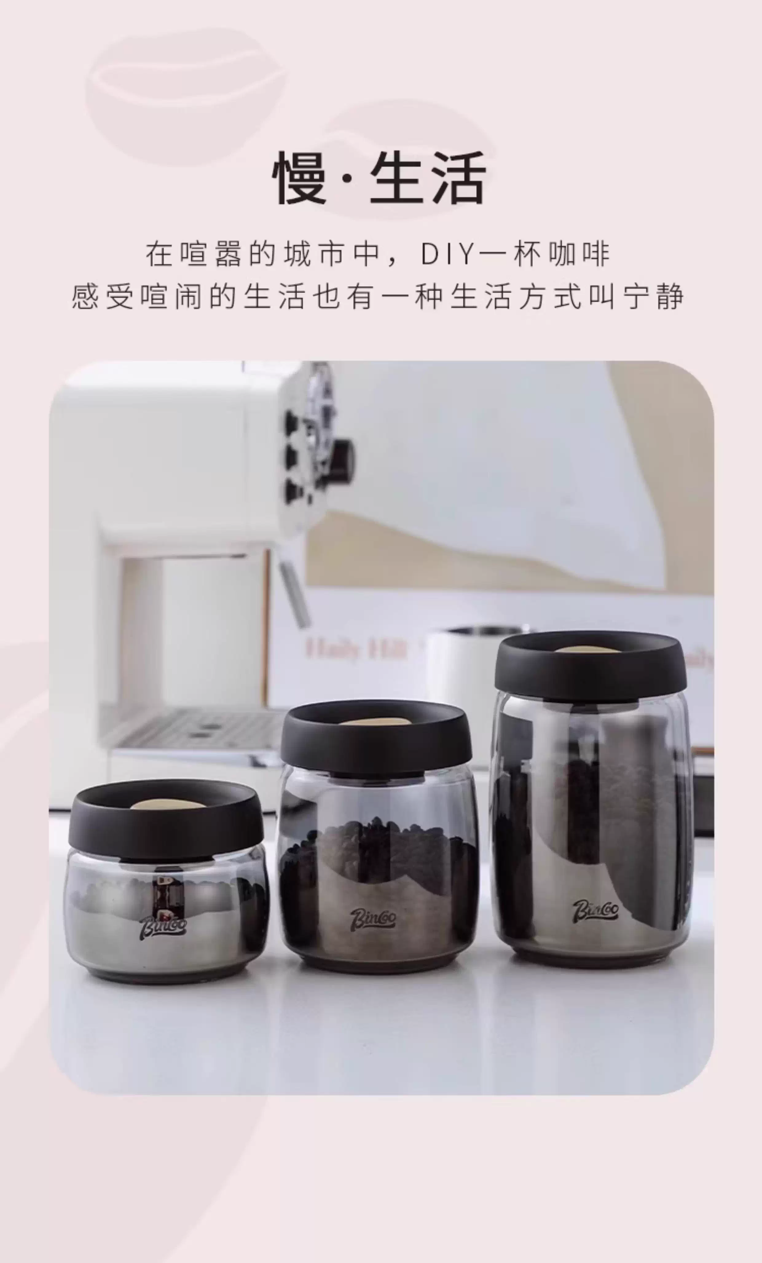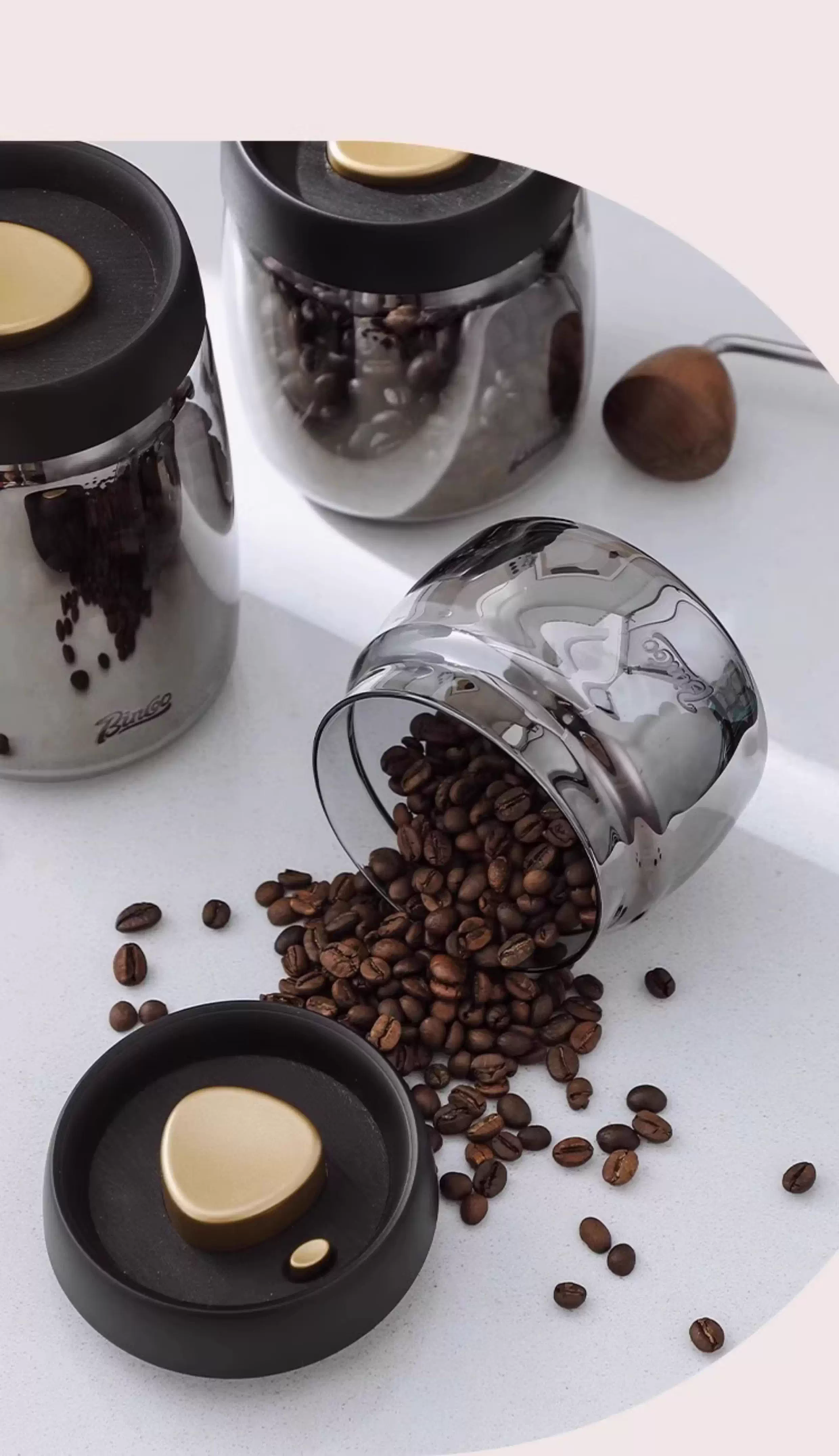 - Hũ đựng cà phê Bincoo bằng thủy tinh, kín chân không, kiểu nhấn, dùng để đựng bột cà phê