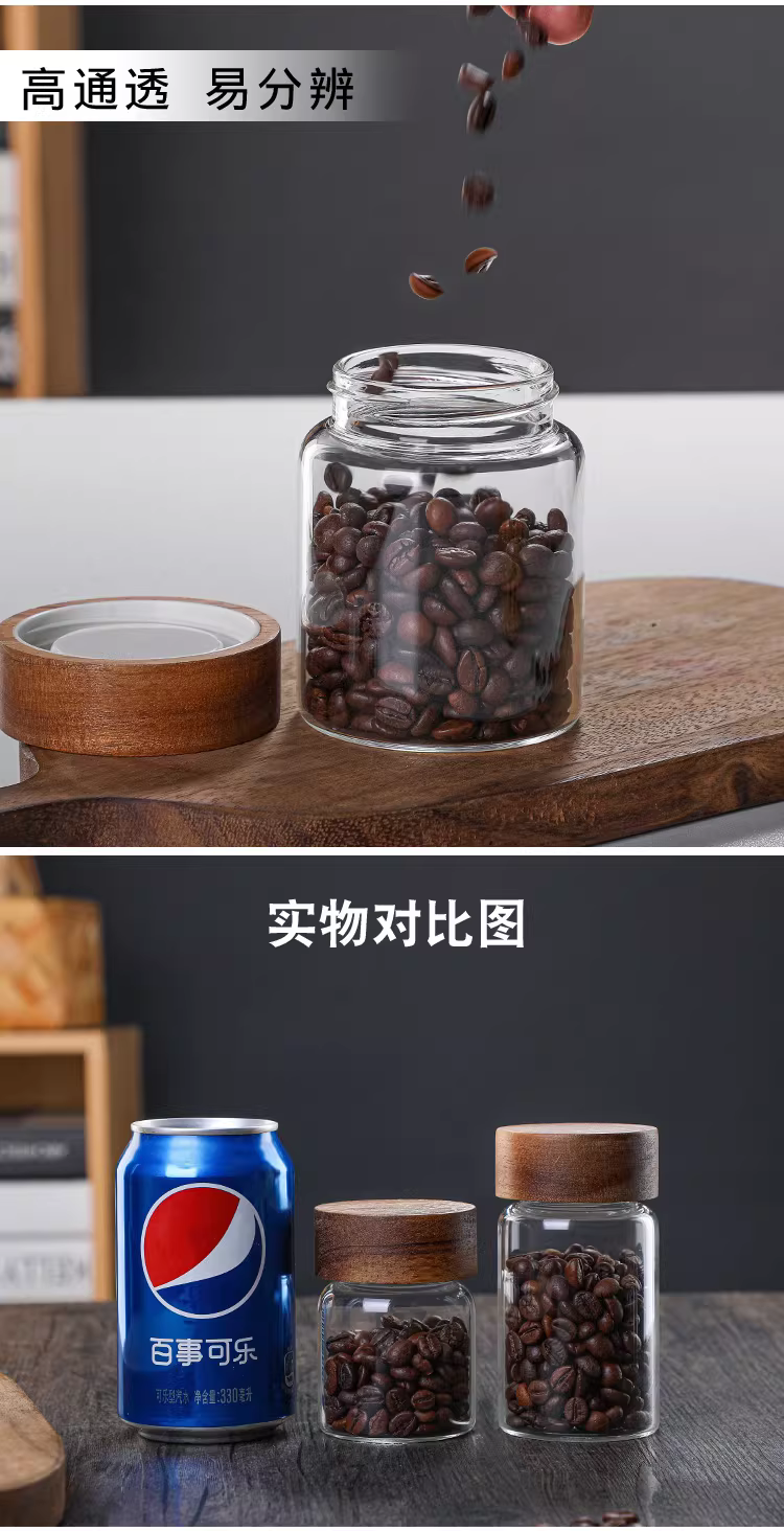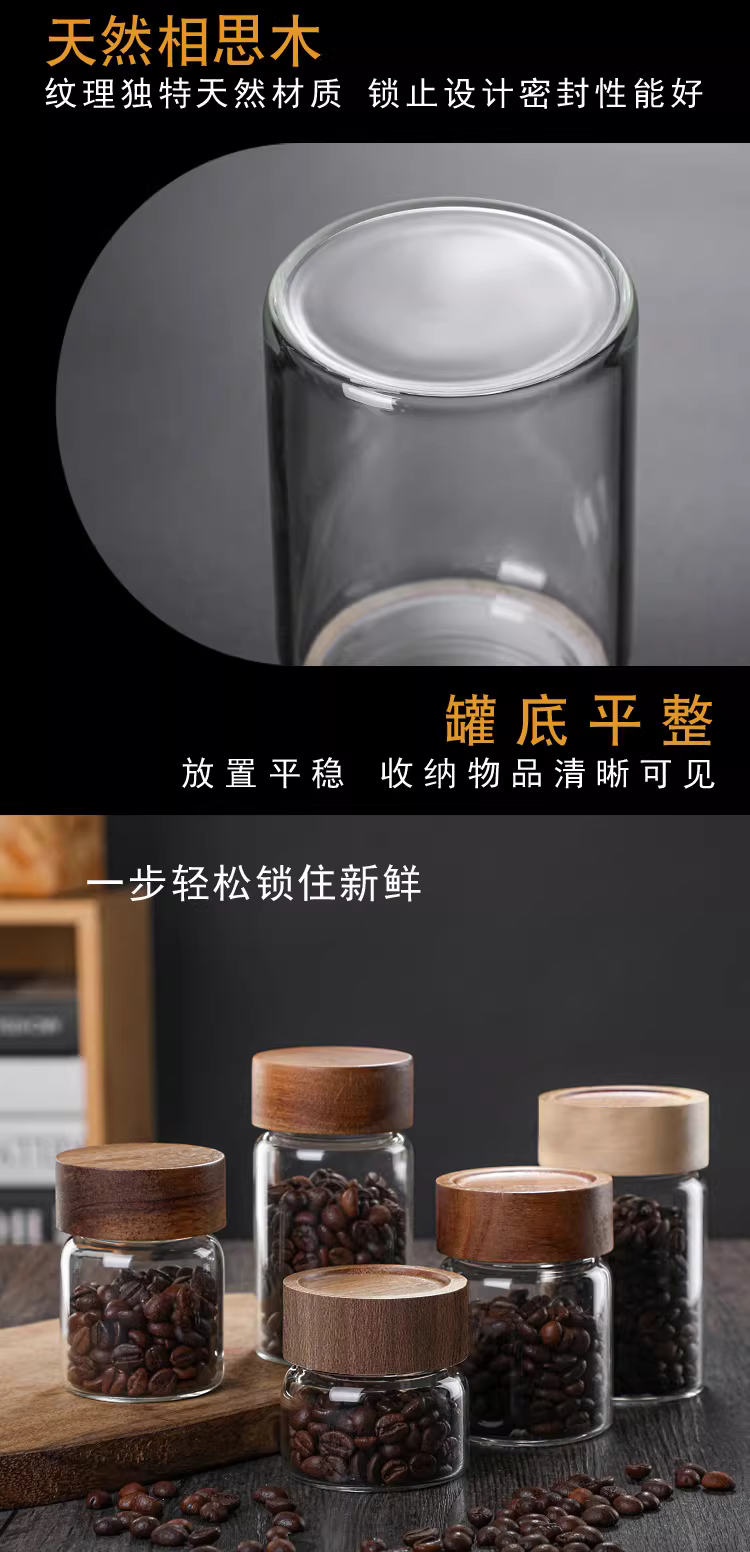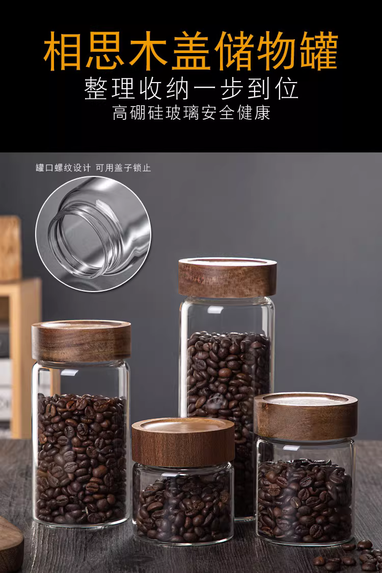 - Hũ thủy tinh chịu nhiệt có nắp gỗ keo, dùng để đựng trà, hoa quả khô, đựng cà phê, bột thực phẩm trong suốt