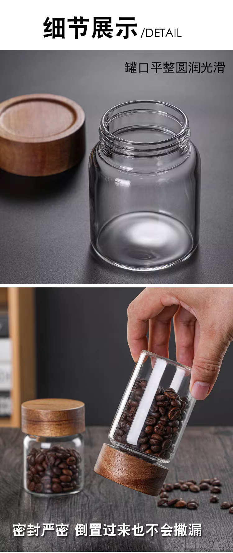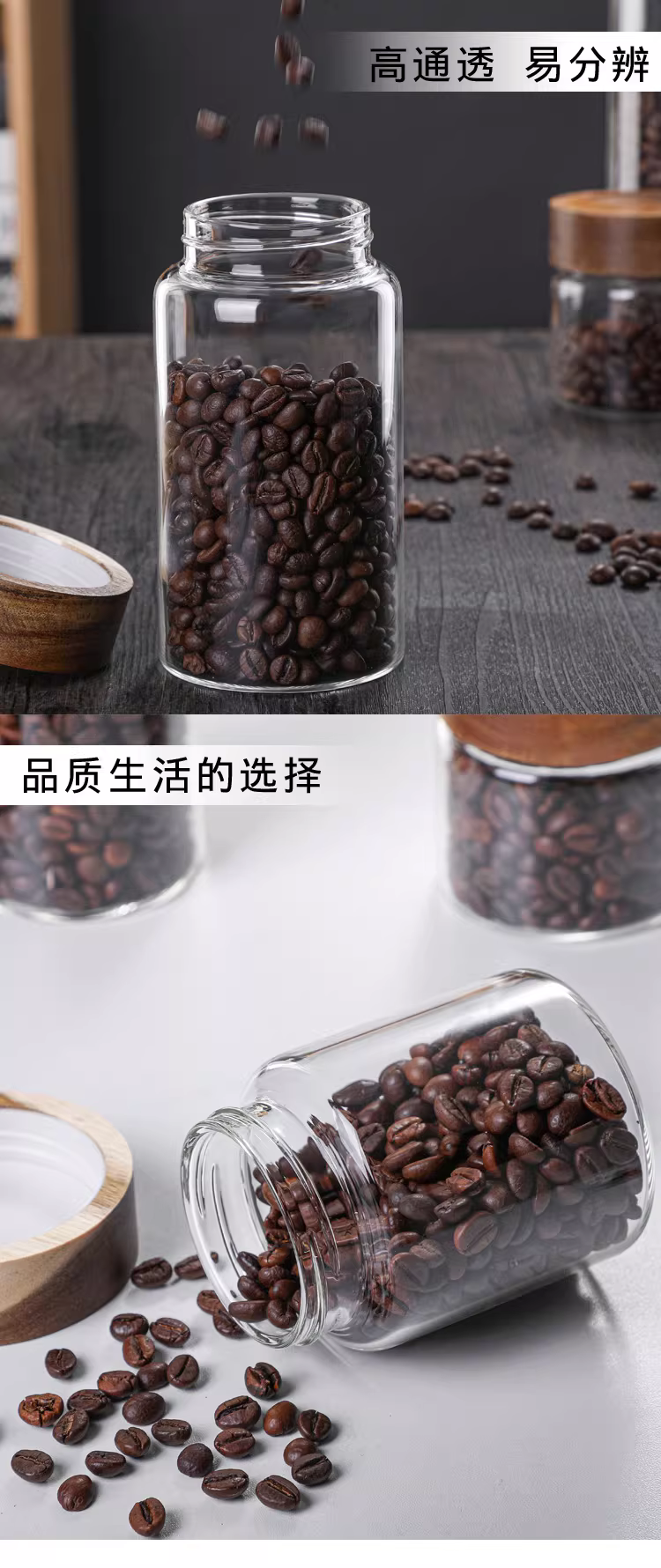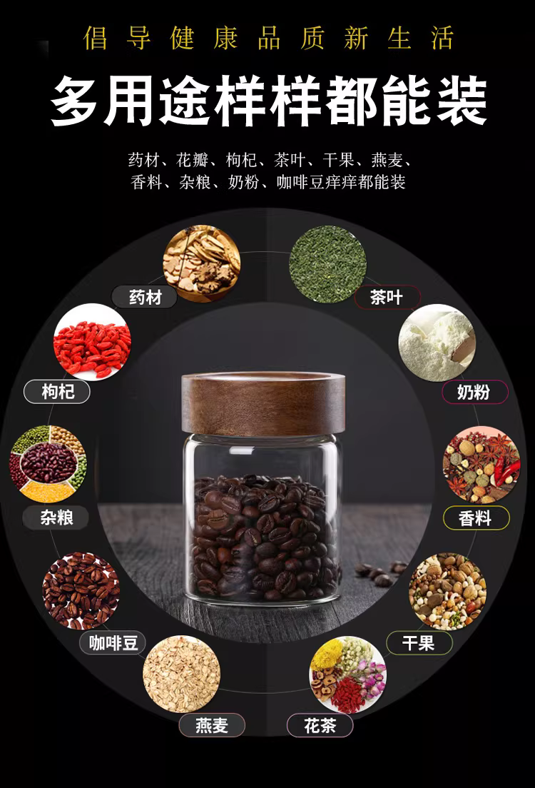 - Hũ thủy tinh chịu nhiệt có nắp gỗ keo, dùng để đựng trà, hoa quả khô, đựng cà phê, bột thực phẩm trong suốt